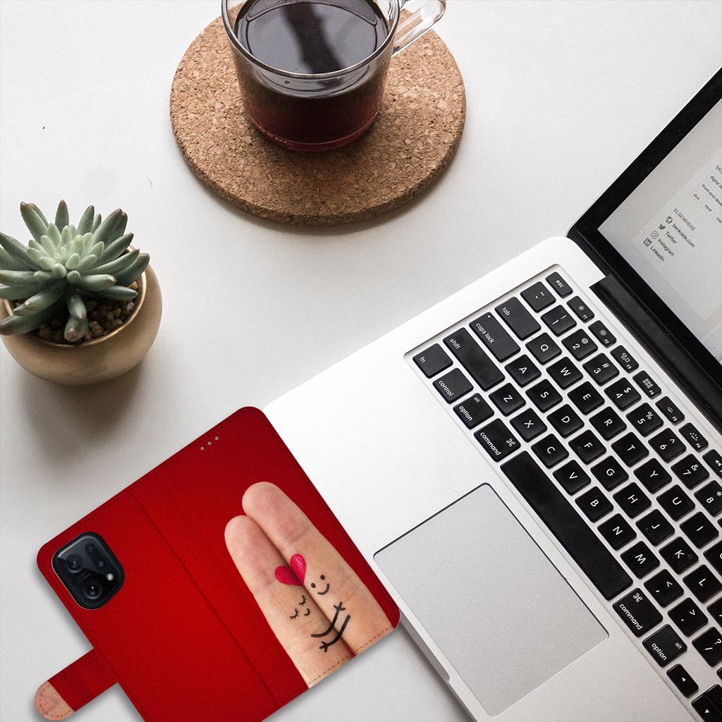 Mensen koesteren momenteel een enorme liefde voor hun smartphone. Ze tonen in veel gevallen zelfs meer genegenheid voor hun telefoon dan voor hun partner. Dag en nacht voelen we ons verbonden met onze smartphone. Vandaar dat je het apparaat ook goed moet beschermen. De beste manier om dat te doen is met een boekhoesje. We hebben op een OPPO Find X5 Wallet Case met Pasjes de Liefde afgebeeld. Hoe toepasselijk. Dit hoesje met print over liefde wordt afgesloten met een lipje aan de buitenzijde en heeft vakjes aan de binnenzijde waarin je pasjes en briefgeld kunt stoppen. Erg handig dus. Daar komt bij dat jouw smartphone volledig bescherming geniet. Alle zijden worden bedrukt met de liefdevolle print. Dit hoesje met een fraai symbool van liefde heeft aan de binnenzijde een houder van TPU.