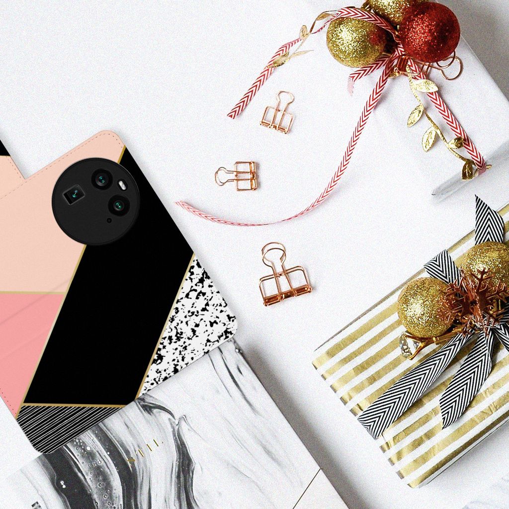 OPPO Find X6 Bookcase met ruimte voor 3 pasjes Zwart Roze Vormen