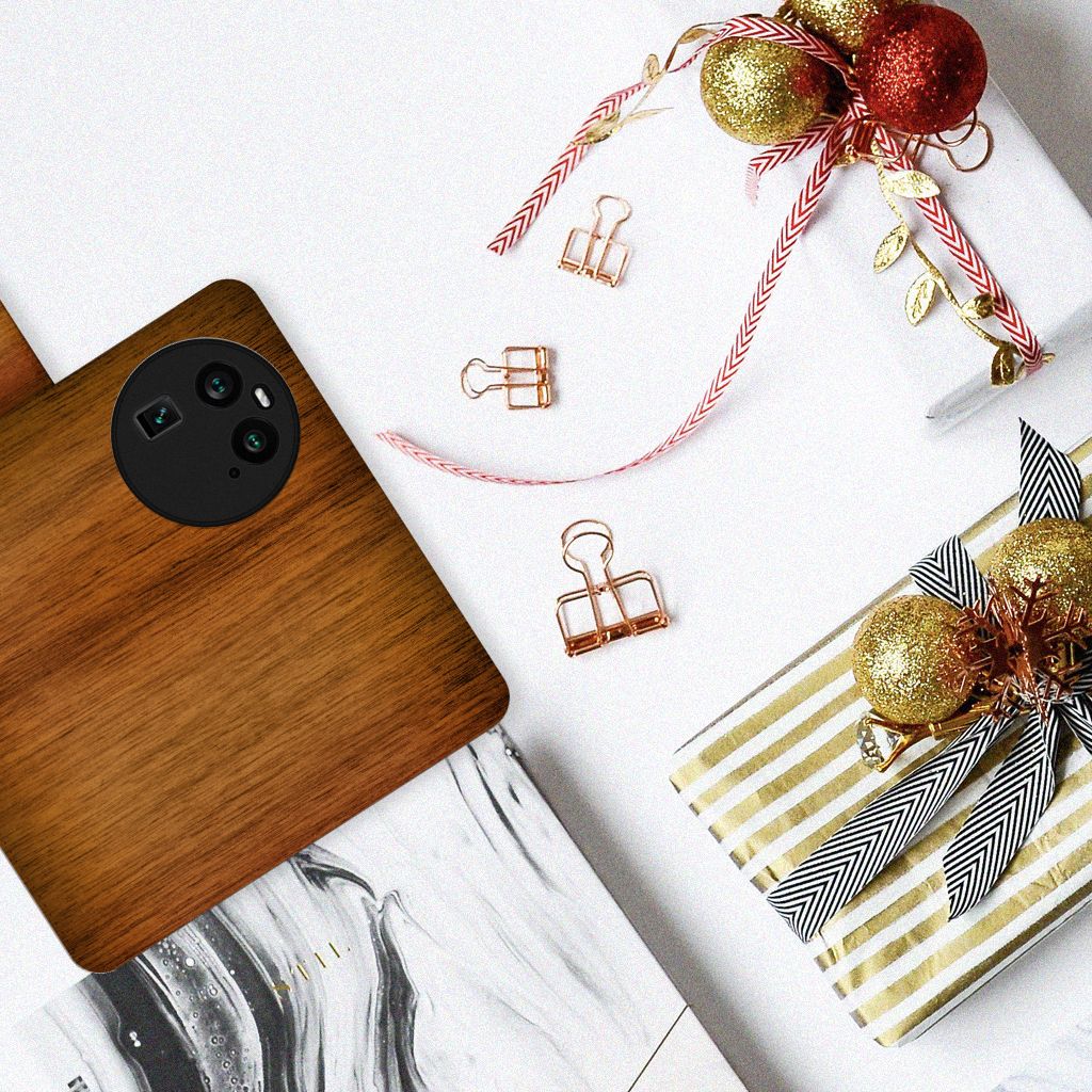 OPPO Find X6 Book Style Case met pasjeshouder Donker Hout