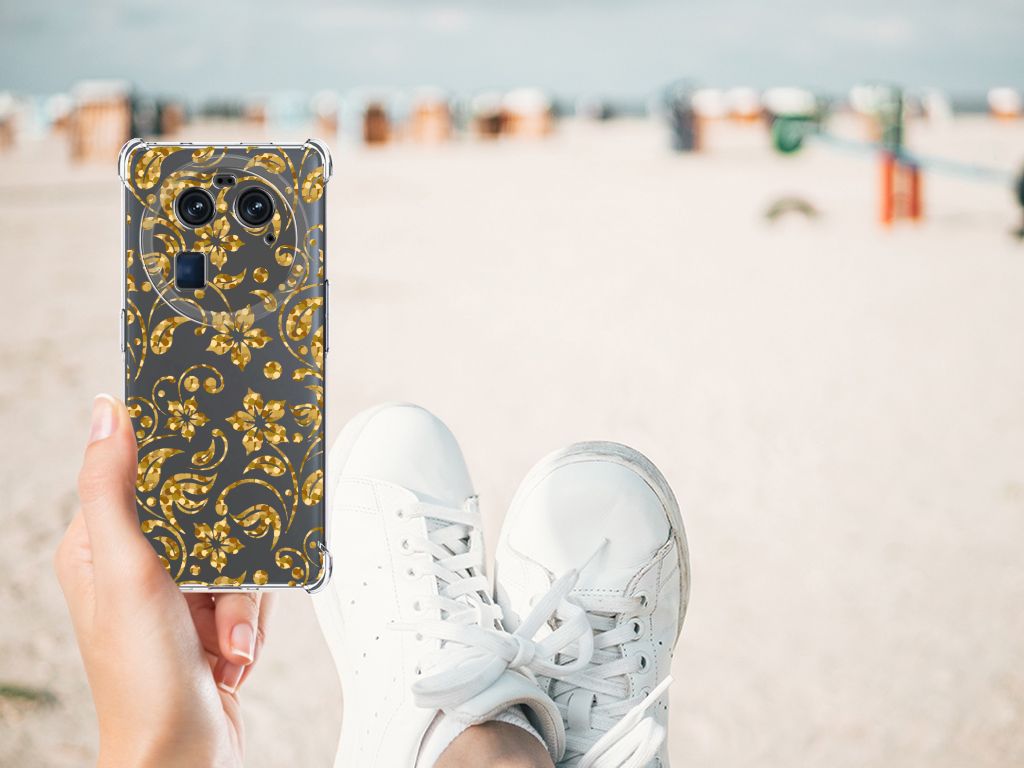 Ben je op zoek naar een uniek telefoonhoesje voor je OPPO Find X6? Dan ben je bij B2C Telecom aan het juiste adres! Speciaal voor jou hebben we dit prachtige Gouden Bloemen design in onze collectie hoesjes opgenomen. Het design wordt bedrukt op een Case en is gemaakt van flexibel rubber. Het hoesje is perfect voor de actieve smartphonegebruiker door de opstaande randen/hoeken. Denk aan mensen die veel sporten, reizen of wandelen en net iets meer zekerheid willen als het op hun geliefde telefoon aankomt. Het design wordt alleen aan de bovenkant van het hoesje bedrukt en de randen blijven transparant. Aan de zijkanten zijn uitsparingen gemaakt waardoor je met gemak alle knoppen en poorten kunt bedienen. Wij adviseren om dit hoesje in combinatie met een screenprotector te gebruiken voor een langere levensduur van je telefoon. Wil je dit hoesje nog iets extra's geven? Voeg dan gratis je naam of een quote toe! Is dit design hoesje toch niet helemaal wat je zocht? Ontwerp dan zelf een hoesje in ons ontwerpprogramma.
