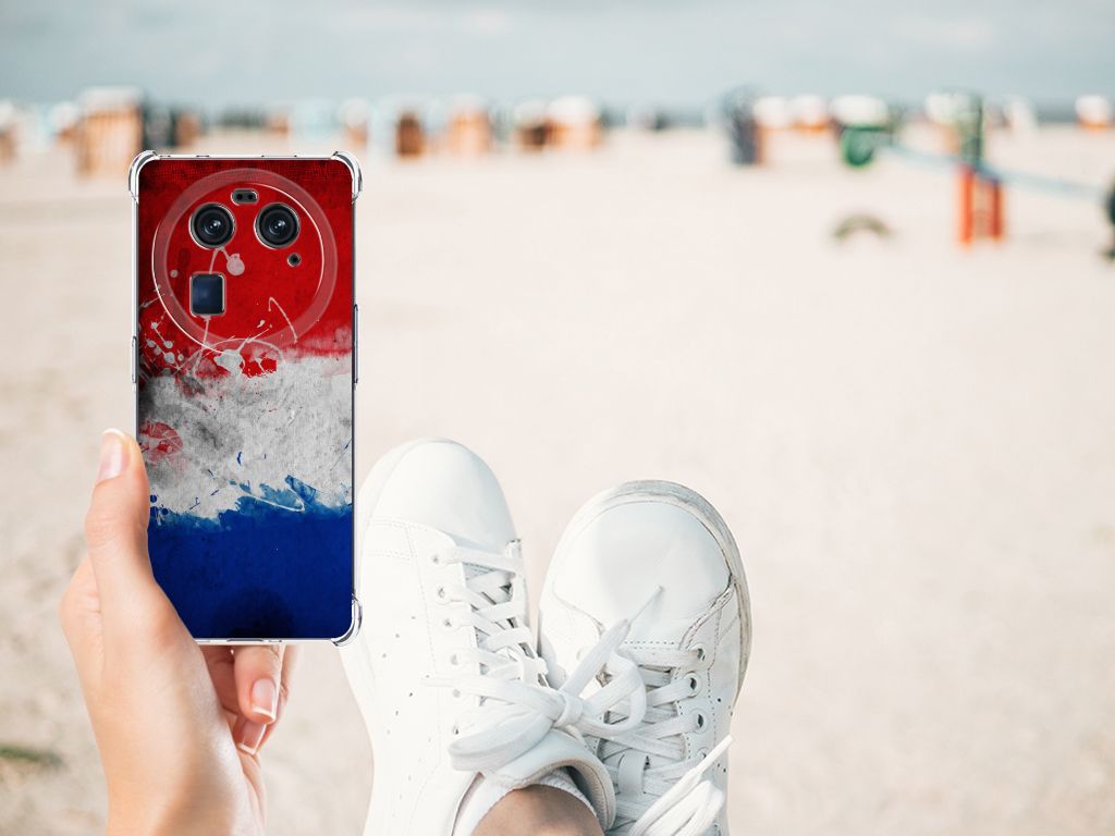 Ben je op zoek naar een uniek telefoonhoesje voor je OPPO Find X6? Dan ben je bij B2C Telecom aan het juiste adres! Speciaal voor jou hebben we dit prachtige Nederlandse Vlag design in onze collectie hoesjes opgenomen. Het design wordt bedrukt op een Cover Case en is gemaakt van flexibel rubber. Het hoesje is perfect voor de actieve smartphonegebruiker door de opstaande randen/hoeken. Denk aan mensen die veel sporten, reizen of wandelen en net iets meer zekerheid willen als het op hun geliefde telefoon aankomt. Het design wordt alleen aan de bovenkant van het hoesje bedrukt en de randen blijven transparant. Aan de zijkanten zijn uitsparingen gemaakt waardoor je met gemak alle knoppen en poorten kunt bedienen. Wij adviseren om dit hoesje in combinatie met een screenprotector te gebruiken voor een langere levensduur van je telefoon. Wil je dit hoesje nog iets extra's geven? Voeg dan gratis je naam of een quote toe! Is dit design hoesje toch niet helemaal wat je zocht? Ontwerp dan zelf een hoesje in ons ontwerpprogramma.