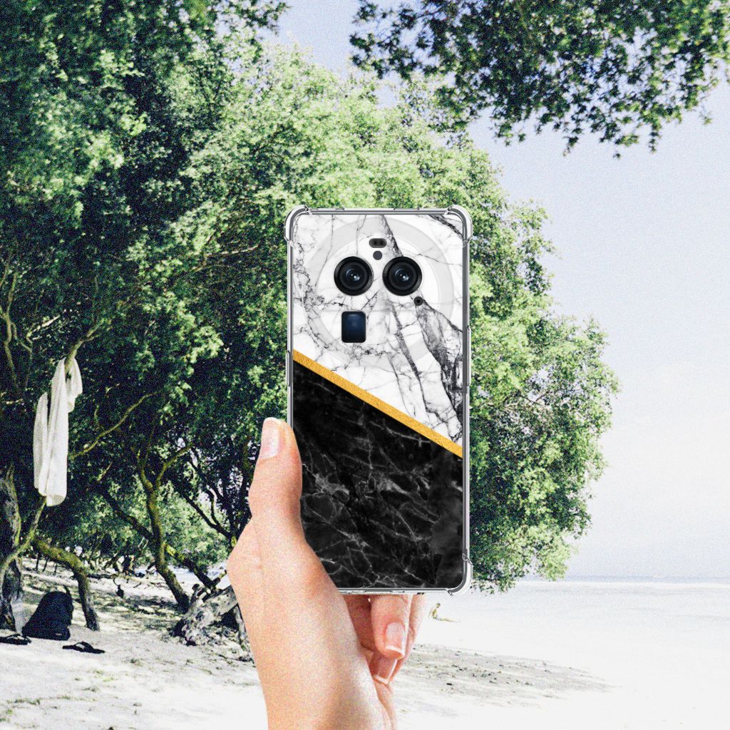 Ben je op zoek naar een uniek telefoonhoesje voor je OPPO Find X6 Pro? Dan ben je bij B2C Telecom aan het juiste adres! Speciaal voor jou hebben we dit prachtige Marble White Black design in onze collectie hoesjes opgenomen. Het design wordt bedrukt op een Anti-Shock Hoesje en is gemaakt van flexibel rubber. Het hoesje is perfect voor de actieve smartphonegebruiker door de opstaande randen/hoeken. Denk aan mensen die veel sporten, reizen of wandelen en net iets meer zekerheid willen als het op hun geliefde telefoon aankomt. Het design wordt alleen aan de bovenkant van het hoesje bedrukt en de randen blijven transparant. Aan de zijkanten zijn uitsparingen gemaakt waardoor je met gemak alle knoppen en poorten kunt bedienen. Wij adviseren om dit hoesje in combinatie met een screenprotector te gebruiken voor een langere levensduur van je telefoon. Wil je dit hoesje nog iets extra's geven? Voeg dan gratis je naam of een quote toe! Is dit design hoesje toch niet helemaal wat je zocht? Ontwerp dan zelf een hoesje in ons ontwerpprogramma.