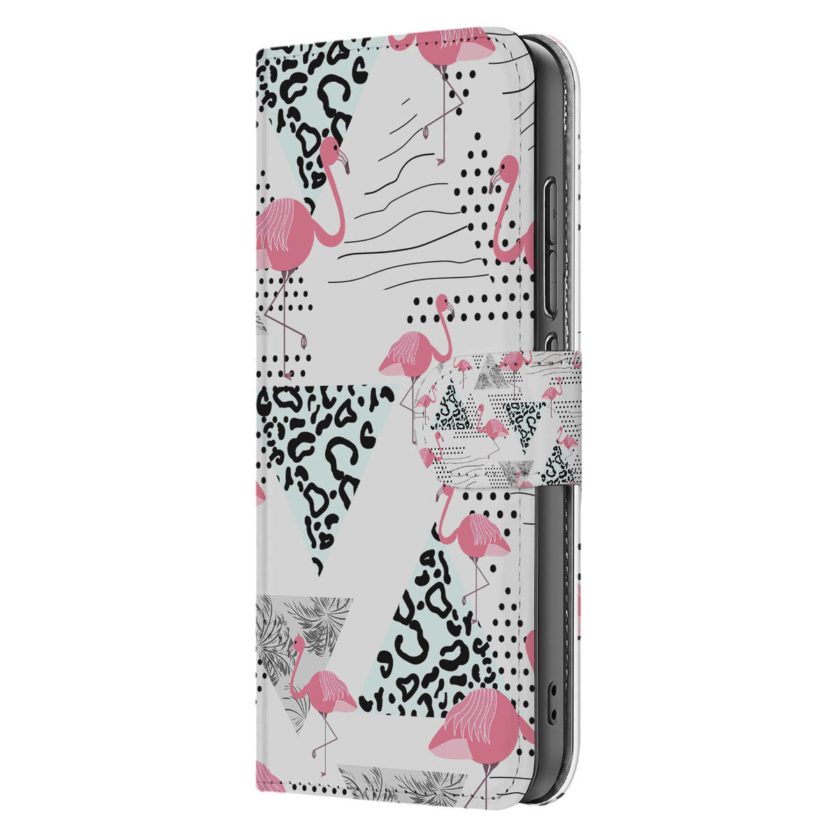 Laat je meevoeren naar een wereld van moderne tropiek met het unieke Flamingo Triangle design. Dit hoesje vertelt het verhaal van sierlijke flamingo's, gevangen in een betoverend geometrisch patroon, speciaal ontworpen om jouw stijl te laten spreken.