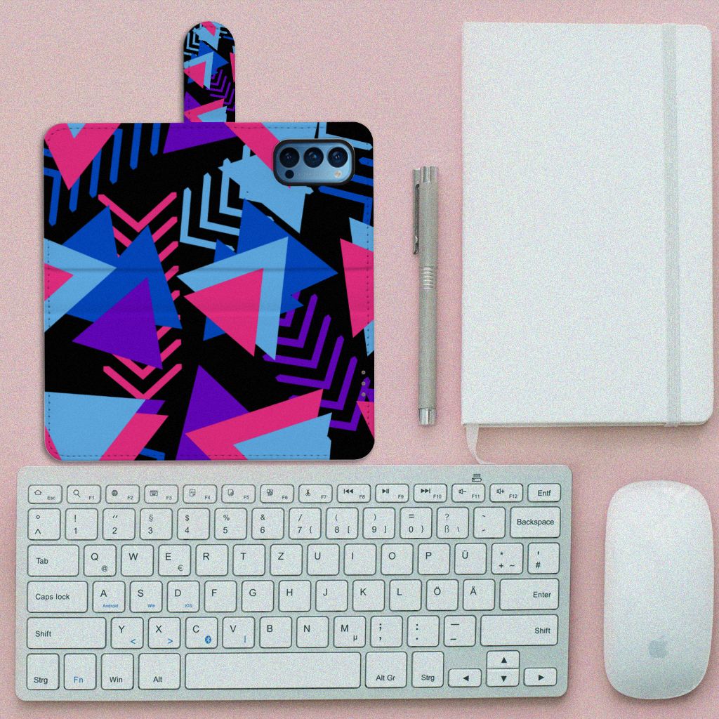 Dit fraaie hoesje met het design Funky Triangle is alles behalve eenvoudig en sober. Dat komt goed uit, want je hebt natuurlijk ook geen doorsnee telefoon gekocht. Mocht je dat wel hebben gedaan, dan wordt hij meteen speciaal als je een OPPO Reno 4 Pro 5G Book Case koopt voor een spotprijsje. Een ding is zeker: opvallen ga je beslist met dit hoesje met paarse, roze en blauwe driehoeken. Jij zult in je element zijn met dit design hoesje met paarse, roze en blauwe driehoeken, omdat het er schitterend uitziet en jouw telefoon perfect beschermt. Het smartphonehoesje beschermt jouw telefoon aan alle zijden en beschikt over verschillende houders voor pasjes en briefgeld. De case sluit perfect af met een lipje aan de buitenkant. De houder aan de binnenzijde is van TPU. Alle zijden van het hoesje worden bedrukt, inclusief het lipje. De paarse, roze en blauwe driehoeken maken de case helemaal af.