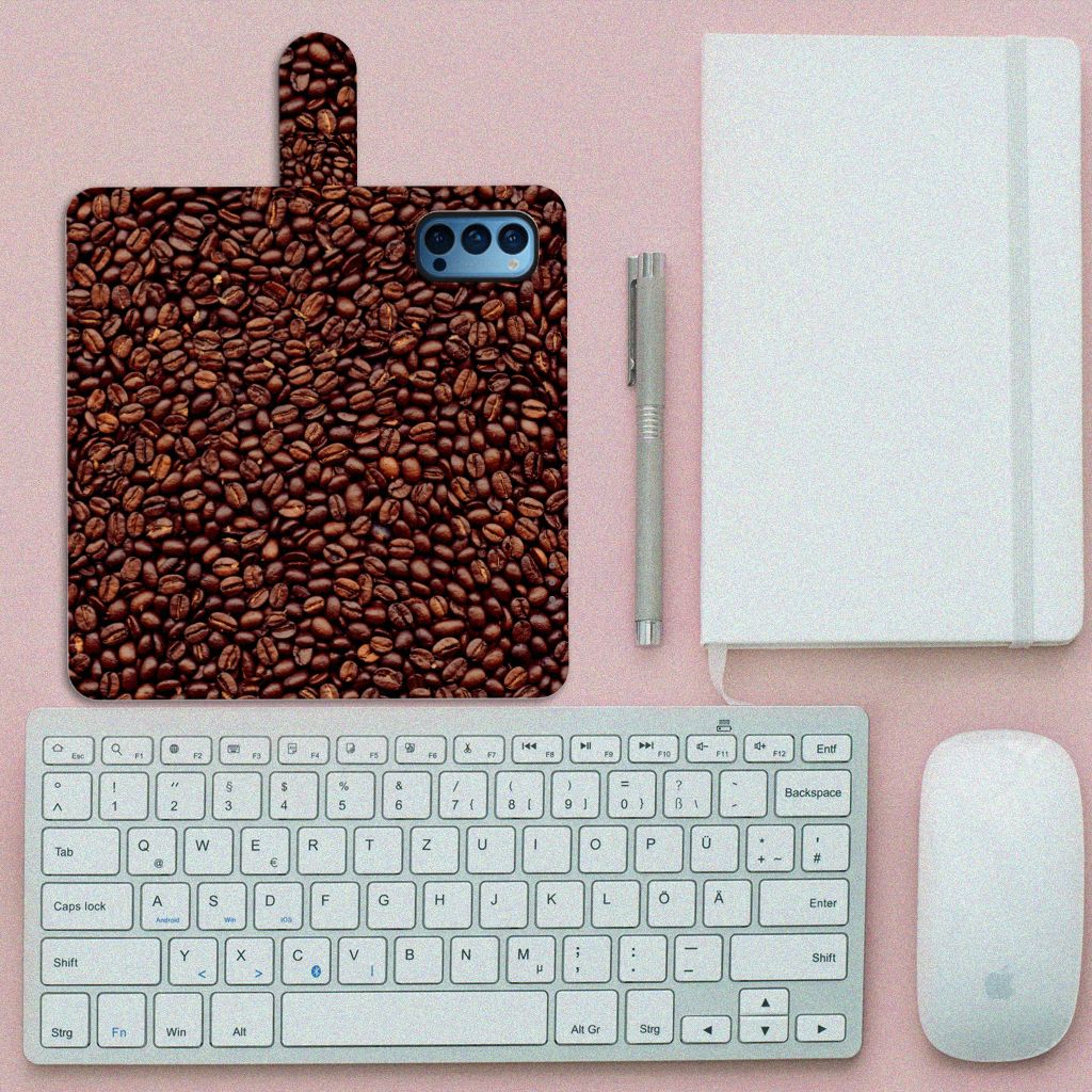 Als je de lekkerste koffie wilt dan kun je het beste koffiebonen kopen. Koffie is namelijk het verst wanneer je de bonen zelf maalt. En wie houdt nou niet van de geur van vers gemaalde koffie? Daarom hebben wij de mooiste Koffiebonen op een smartphone hoesje gezet. Ben je barista, dan is dit het perfecte hoesje voor jouw werktelefoon. De koffiebonen staan op een boekhoesje. Er is vrijwel geen betere bescherming dan dit hoesje, dat ook nog eens opbergvakjes heeft en zeer praktisch is. Je kunt je beurs thuislaten met een OPPO Reno 4 Pro 5G Book Cover. Alle zijden van dit hoesje zijn bedrukt, evenals het lipje aan de buitenzijde. Mensen die houden van een stevige espresso, kiezen voor dit degelijke design hoesje met bonen. Er staan ook bonen op het lipje en je kunt zelf een eigen tekst toevoegen.