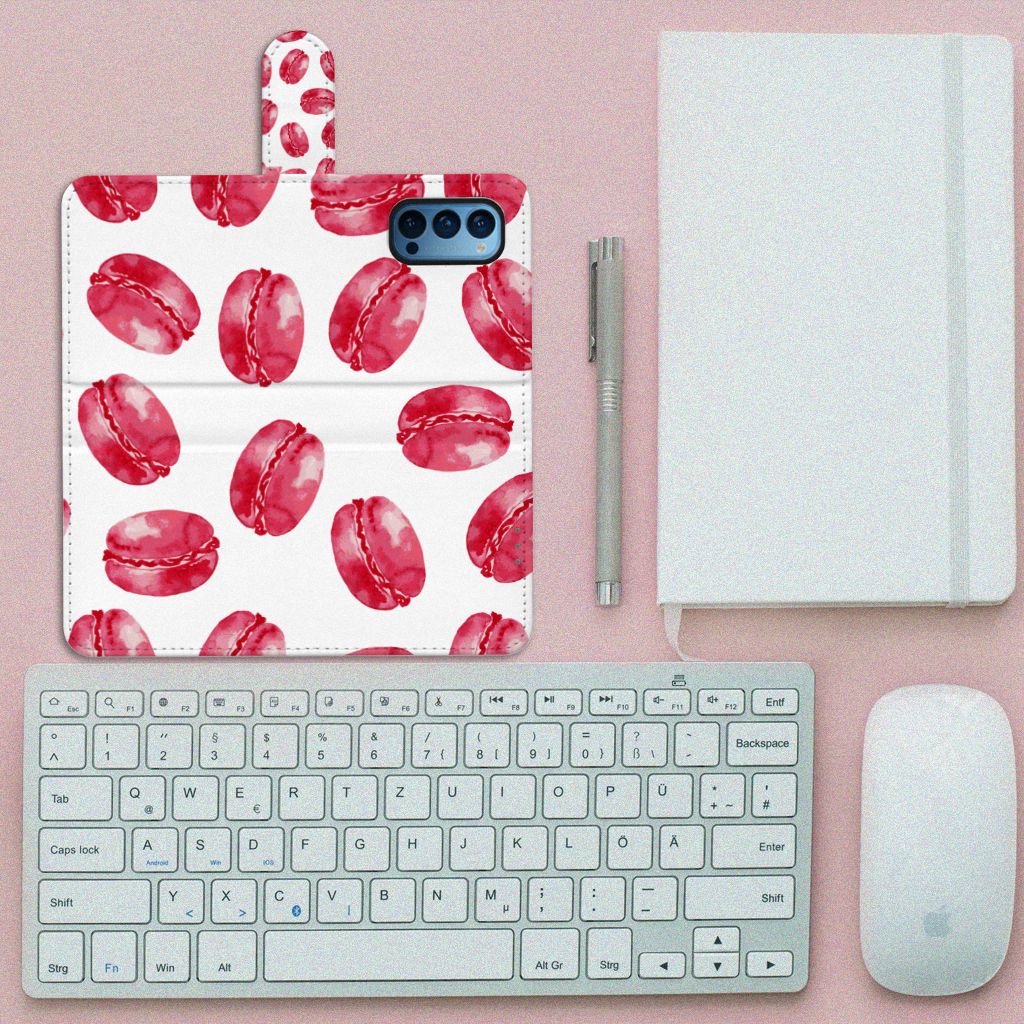Dit hoesje met Pink Macarons is een zeer opvallende bescherming voor jouw smartphone. Macarons zijn Franse koekjes: kleine, rond en luchtig. Ze worden in veel verschillende smaken gemaakt, herkenbaar aan de verschillende kleuren zoals chocolade (donkerbruin), mokka (middenbruin), kersen (rood), pistache (groen), aardbei (roze), framboos (karmijn). Deze kleuren kun je niet allemaal zien op dit fraaie design hoesje met roze macarons. Heb je altijd al een OPPO Reno 4 Pro 5G Book Cover willen hebben met roze macarons? Grijp dan nu je kans. Een boekhoesje heeft zeer veel goede eigenschappen, zoals opbergvakjes aan de binnenkant en een magnetische sluiting in de vorm van een lipje aan de buitenzijde. Dit design hoesje met roze macarons wordt aan alle zijden bedrukt, zelfs het lipje krijgt een afbeelding van een roze macaron. De houder aan de binnenkant van het hoesje is van TPU.