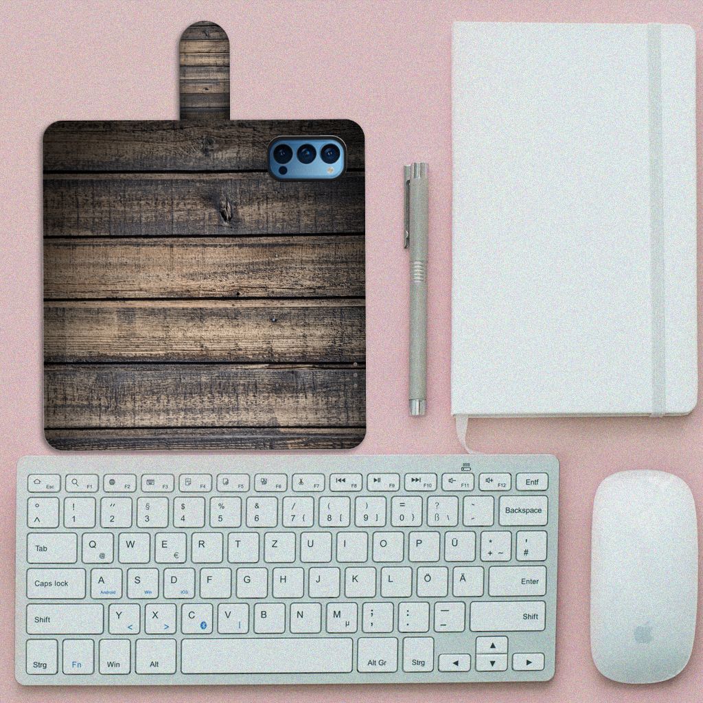 OPPO Reno 4 Pro 5G Bookstyle Case met ruimte voor 3 pasjes Steigerhout
