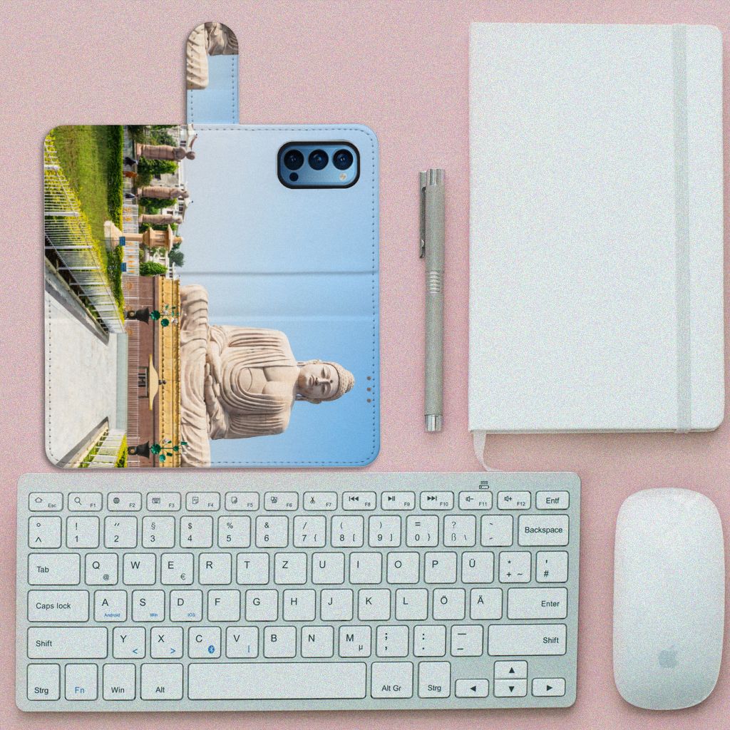 Van dit hoesje met boeddha print word je vanzelf rustig van binnen. Een boeddha staat te allen tijde voor geluk, symbolische genezing, liefde voor de ander, maar ook voor eigenwaarde. Daarnaast staat de boeddha symbool voor eeuwige vriendschap. Boeddhabeelden zie je vooral in tempels, maar tegenwoordig zien we ze ook steeds vaker in huizen en tuinen staan. Een boeddha dient met respect te worden behandeld. Doe dat dus ook met je telefoon. Dat kan met dit hoesje met Boeddha print. De case zorgt ervoor dat jij en je OPPO Reno 4 Pro 5G voor langere tijd in harmonie samen kunnen leven. Het design staat op een Flip Cover. Dit smartphonehoesje beschermt jouw telefoon aan alle zijden en beschikt over verschillende opbergvakjes voor pasjes en briefgeld. De case sluit perfect af met het lipje aan de buitenkant. De houder aan de binnenzijde is van TPU. Alle zijden van het hoesje worden bedrukt, inclusief het lipje.