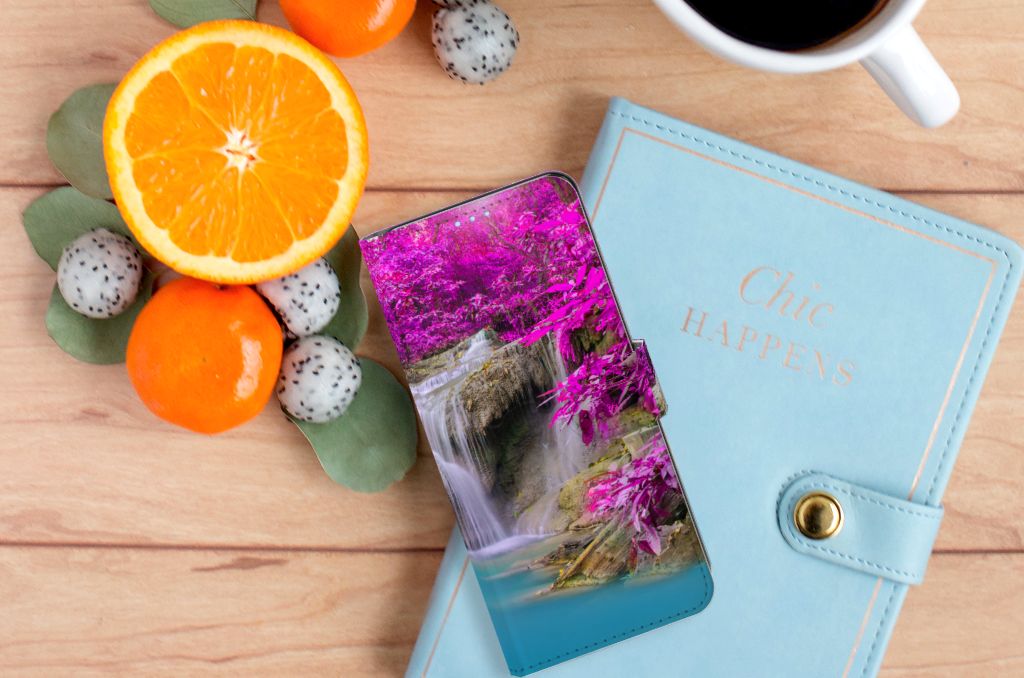 Op deze OPPO Reno 4 Pro 5G Flip Cover zie je een kalme waterval en de achtergrond is gevuld met paarse bomen. Samen creëert dit een prachtig en kleurrijk spektakel, iets wat je graag op je OPPO Reno 4 Pro 5G hoesje ziet. Wanneer je hiernaar kijkt, word je direct kalm. Als jij je even boos of verdrietig voelt, hoef je alleen maar naar jouw boekhoesje te kijken om weer blij te worden. Ook jouw telefoon zal blij zijn met deze Flip Cover aangezien deze goede bescherming biedt. Als jij je telefoon per ongeluk laat vallen, is er niets aan de hand. Het hoesje zorgt ervoor dat de telefoon intact blijft. Zelfs als hij op het beeldscherm zou vallen, is er dankzij de magnetische sluiting, niets aan de hand.