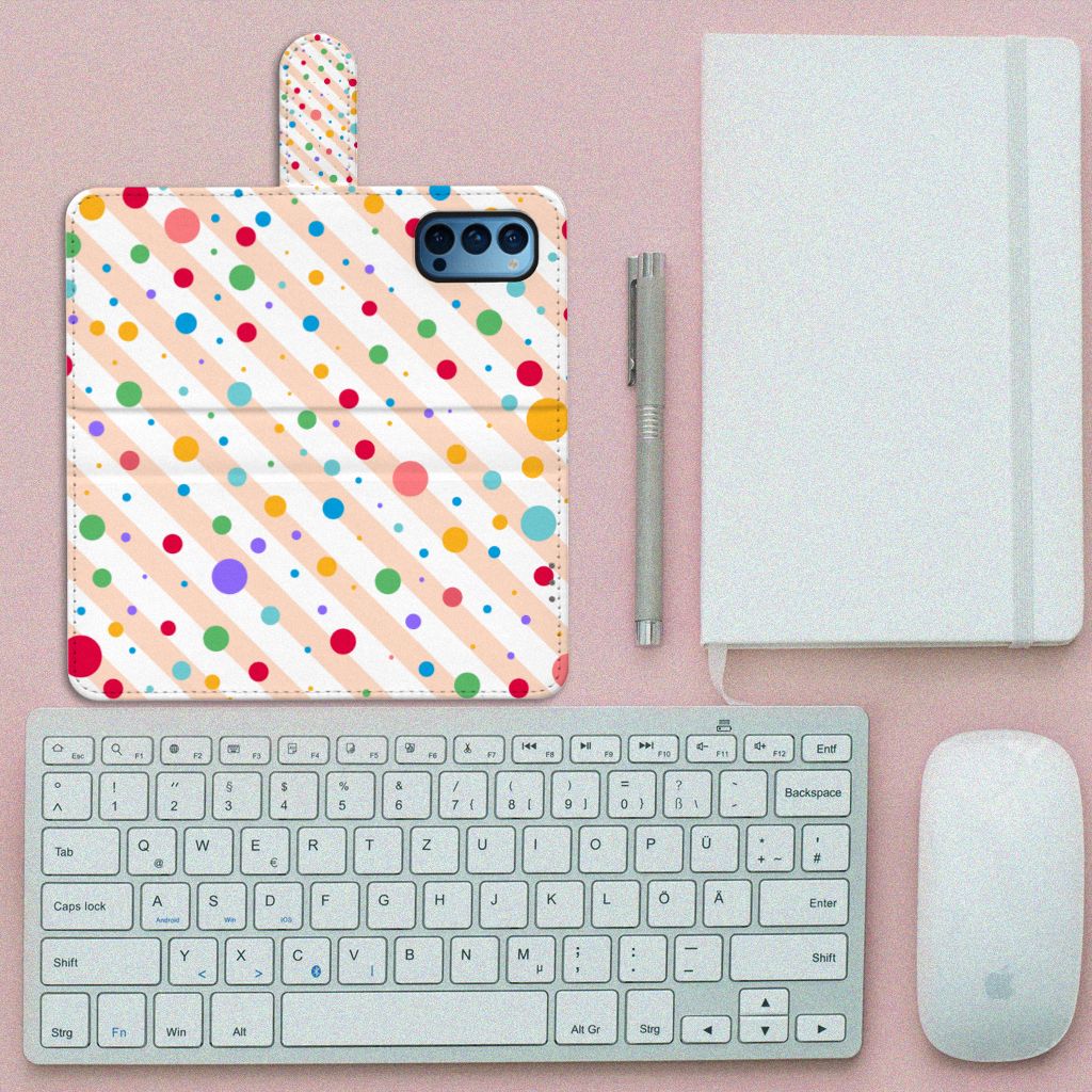 Een OPPO Reno 4 Pro 5G Telefoon Hoesje met verschillende kleuren stippen is een schitterende bescherming van jouw smartphone. Het boekhoesje met het design Dots in alle kleuren van de regenboog komt voor jou als geroepen. Maak je geen gebruik van dit zeer mooie hoesje, dan kan het met jouw smartphone een beetje beroerd aflopen. Dit mooie boekhoesje met verschillende kleuren stippen zorgt voor een volledige bescherming van je smartphone en wordt aan alle zijden bedrukt. Sommige stippen staan ook op het magnetische lipje aan de buitenzijde. Verder is de houder aan de binnenzijde van TPU. Jouw telefoon is dus zeer goed opgeborgen en kan geen kant op. Met een hoesje met stippen in verschillende kleuren op alle zijden blijft jouw telefoon volledig in tact. Heb je liever een boekhoesje met stippen in andere opvallende kleuren? Ontwerp dan zelf case met je eigen foto’s en teksten!
