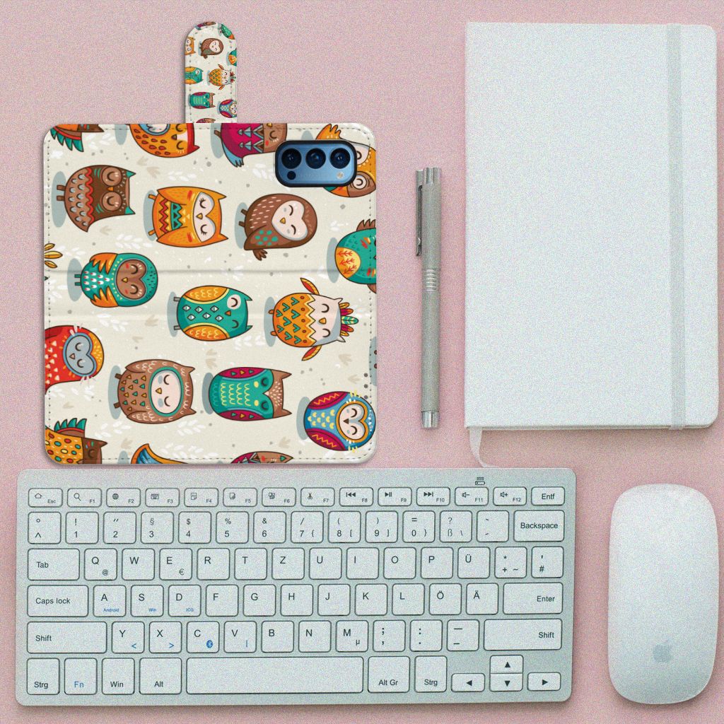 OPPO Reno 4 Pro 5G Telefoonhoesje met ruimte voor drie pasjes Vrolijke Uilen