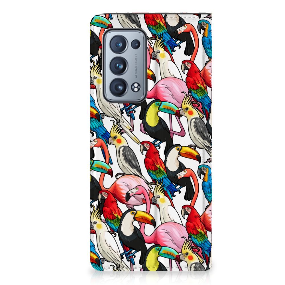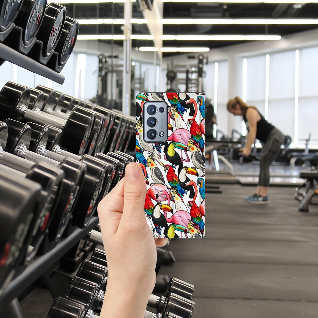 Dit exotische hoesje vol prachtige vogels is een genot voor het oog. Dankzij de felgekleurde toekans, papegaaien, flamingo’s en kaketoes op dit design word je meteen vrolijk als je naar dit hoesje kijkt. Je waant je meteen in de tropen met dit bonte gezelschap tegen een witte achtergrond. Het ontwerp staat op een Hoesje maken voor de OPPO Reno 6 Pro Plus 5G. Dit populaire smartphonehoesje met het beton-design heeft één vakje voor een pasje of briefgeld en is aan alle zijden bedrukt. Met de standcase zet je je telefoon gemakkelijk neer, zodat je je handen vrij hebt als je bijvoorbeeld een video wilt kijken. De binnenkant van de standcase is van grijs PU-leer. Dat is fijn, omdat je daardoor niet snel vlekken ziet op je hoesje.
