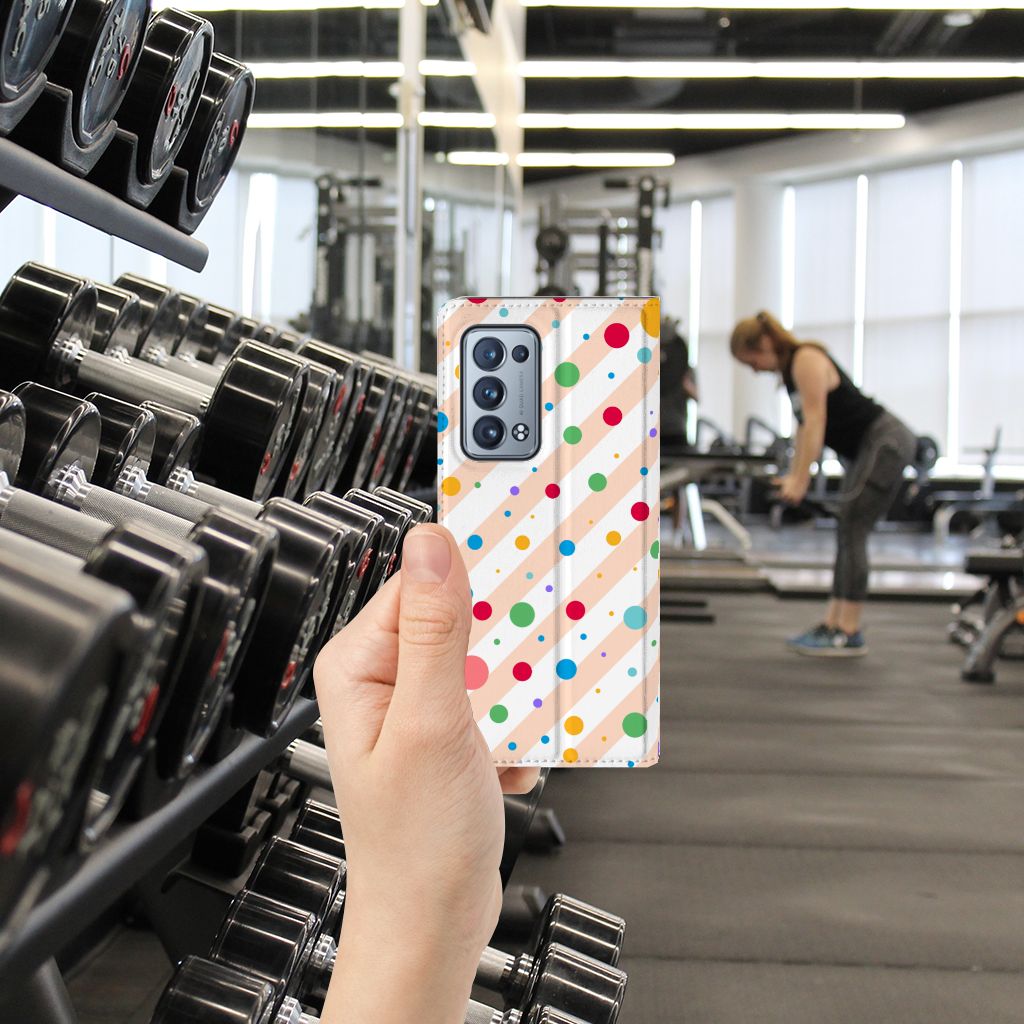 Een OPPO Reno 6 Pro Plus 5G Hoesje met Magneet met verschillende kleuren stippen is een schitterende bescherming van jouw smartphone. De stand case met het design Dots in alle kleuren van de regenboog komt voor jou als geroepen. Maak je geen gebruik van dit zeer mooie hoesje, dan kan het met jouw smartphone een beetje beroerd aflopen. Dit mooie stand hoesje met verschillende kleuren stippen zorgt voor een volledige bescherming van je smartphone en wordt aan alle zijden bedrukt. Dankzij de speciale standaard kun je rustig achteroverleunend filmpjes bekijken terwijl je je handen vrij hebt. Verder is de houder aan de binnenzijde van TPU. Jouw telefoon is dus zeer goed opgeborgen en kan geen kant op. Met een hoesje met stippen in verschillende kleuren op alle zijden blijft jouw telefoon volledig in tact. Heb je liever een stand case met stippen in andere opvallende kleuren? Ontwerp dan zelf case met je eigen foto’s en teksten!