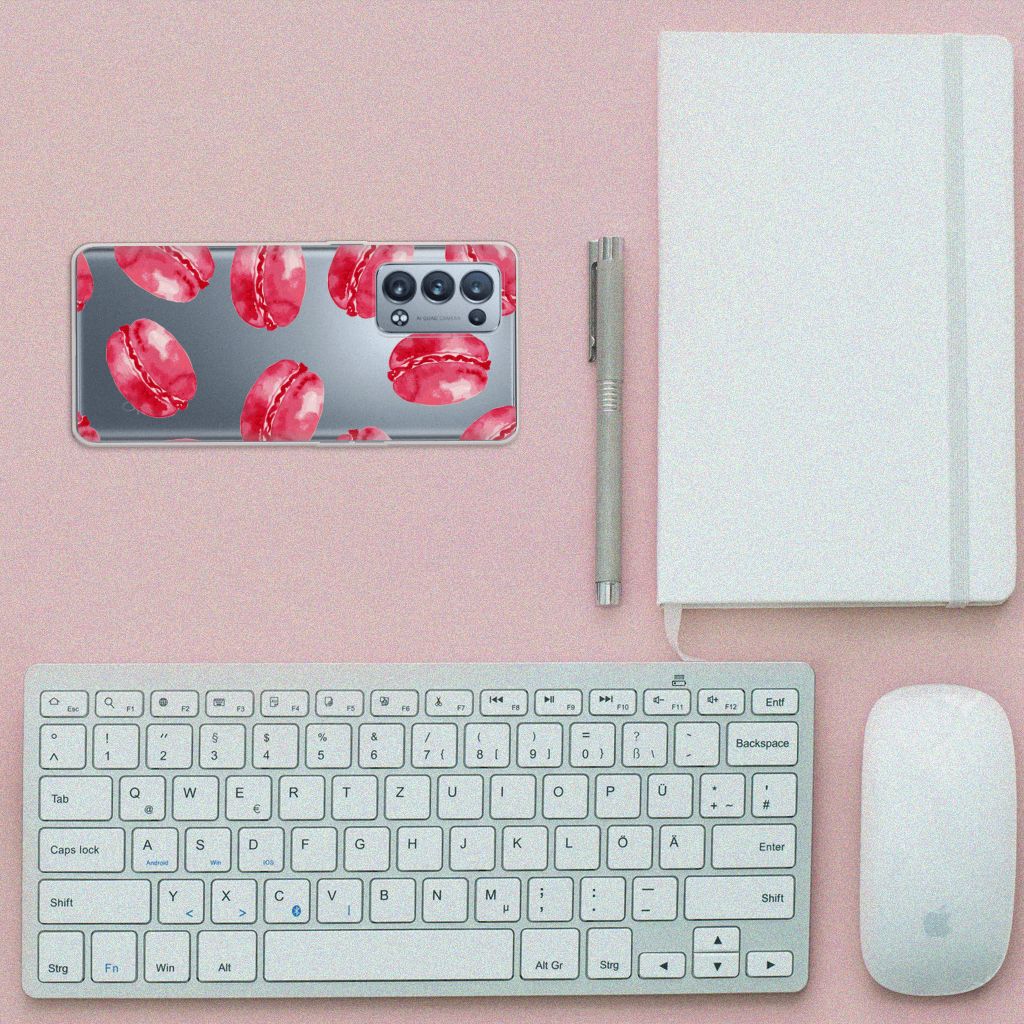 Dit tpu hoesje met Pink Macarons is een zeer opvallende bescherming voor jouw smartphone. Macarons zijn Franse koekjes: kleine, rond en luchtig. Ze worden in veel verschillende smaken gemaakt, herkenbaar aan de verschillende kleuren zoals chocolade (donkerbruin), mokka (middenbruin), kersen (rood), pistache (groen), aardbei (roze), framboos (karmijn). Deze kleuren kun je niet allemaal zien op dit fraaie design hoesje met roze macarons. Heb je altijd al een OPPO Reno 6 Pro Plus 5G Siliconen Case willen hebben met roze macarons? Grijp dan nu je kans. Deze case heeft zeer veel goede eigenschappen, zoals elastisch vermogen, flexibiliteit en schokbestendigheid. Dit design hoesje met roze macarons wordt aan de bovenkant bedrukt, de zijkanten blijven doorzichtig. De case heeft opstaande randen aan de voorzijde en beschermt samen met een screenprotector jouw telefoon perfect. De case heeft ook een handige standaard.