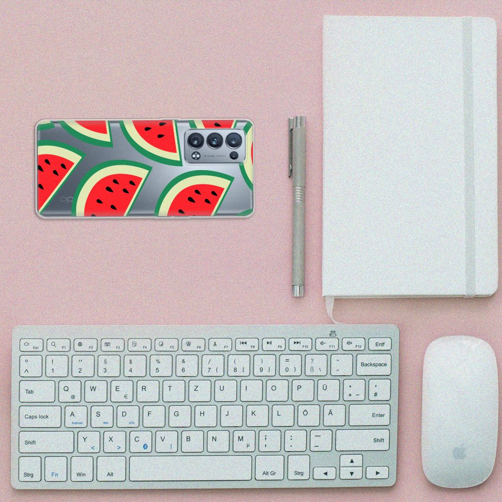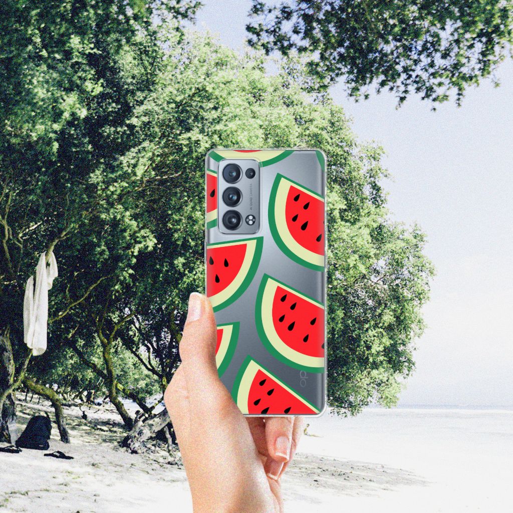 Watermeloenen zijn uitstekende dorstlessers, misschien dat je daarom juist in de zomermaanden extra enthousiast raakt van dit design hoesje Watermelons. Jij blijft gezond als je zo nu en dan een watermeloen neemt, jouw smartphone blijft in tact als je er deze OPPO Reno 6 Pro Plus 5G Siliconen Case omheen doet. Deze tpu case wordt alleen aan de bovenkant bedrukt met watermeloenen is zeer flexibel. De randen van het hoesje blijven transparant. Je kunt ook kiezen voor andere soorten fruit op je hoesje. Kijk maar eens naar onze andere design hoesjes op onze website.