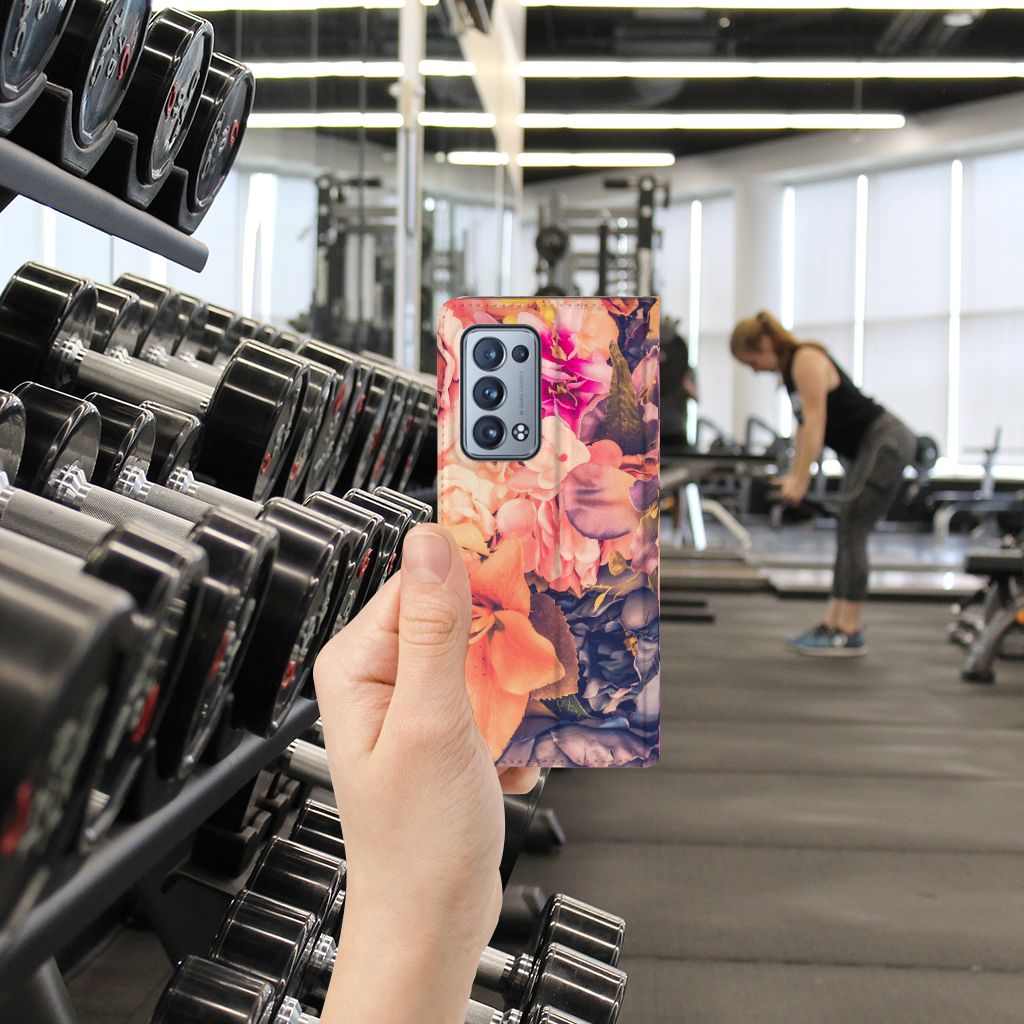 Dit Bosje Bloemen doet een mens en zijn smartphone goed. De oranje, paarse en roze bloemen op deze OPPO Reno 6 Pro Plus 5G Smart Cover geven jouw smartphone een zeer sierlijke uitstraling. Je wordt er ook meteen vrolijker van als je aan het appen, mailen of aan het bellen bent. Valt dan je telefoon op de grond, dan zal er dankzij de stand case met oranje, paarse en roze bloemen geen schade ontstaan. Onze stand cases met oranje, paarse en roze bloemen bieden de allerbeste bescherming en zijn heel praktisch, wat blijkt uit onder meer het vakje aan de binnenkant en de handige standaard waarmee je de smartphone rechtop op tafel neer kunt zetten. De oranje, paarse en roze bloemen passen goed op alle zijden van de case. Op deze stand case van leer en TPU (houder aan de binnenkant) is het ook mogelijk je eigen ontwerp te zetten. In no time maak je zelf een stand case met daarop foto’s van jouw favoriete bloemen.