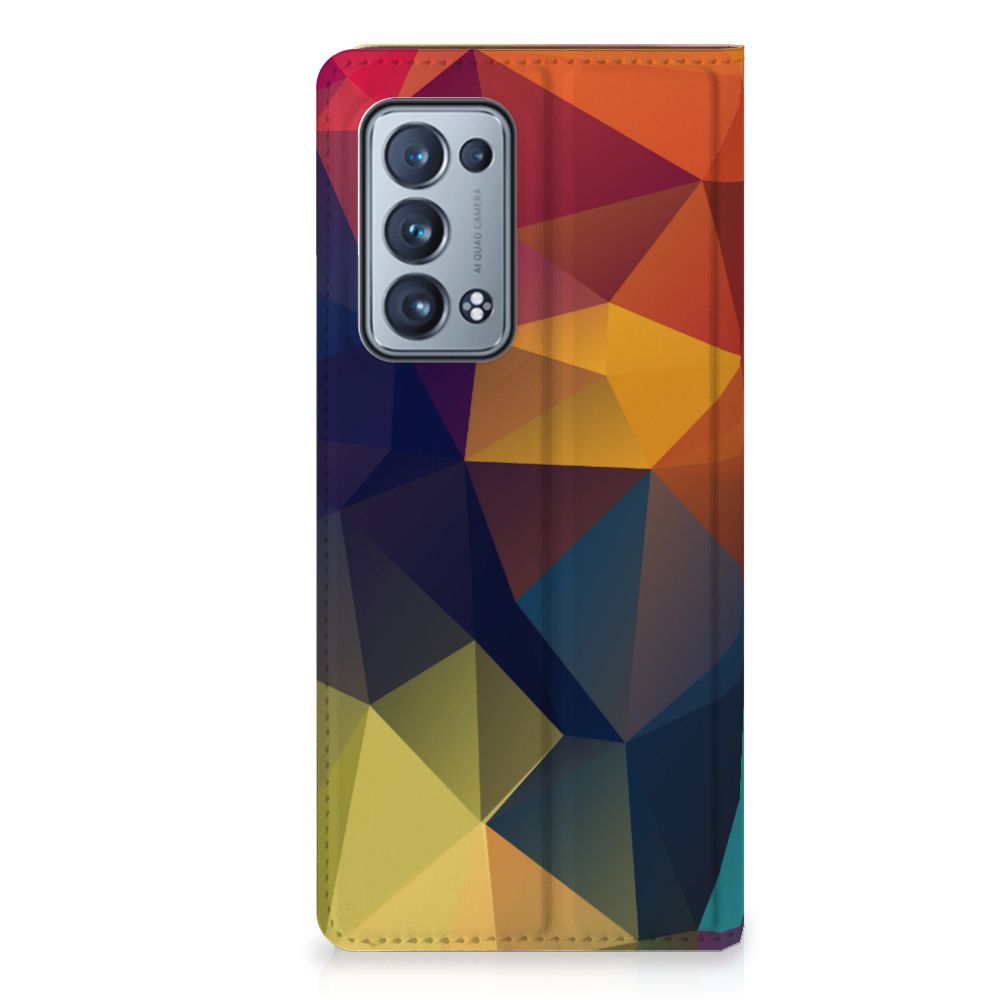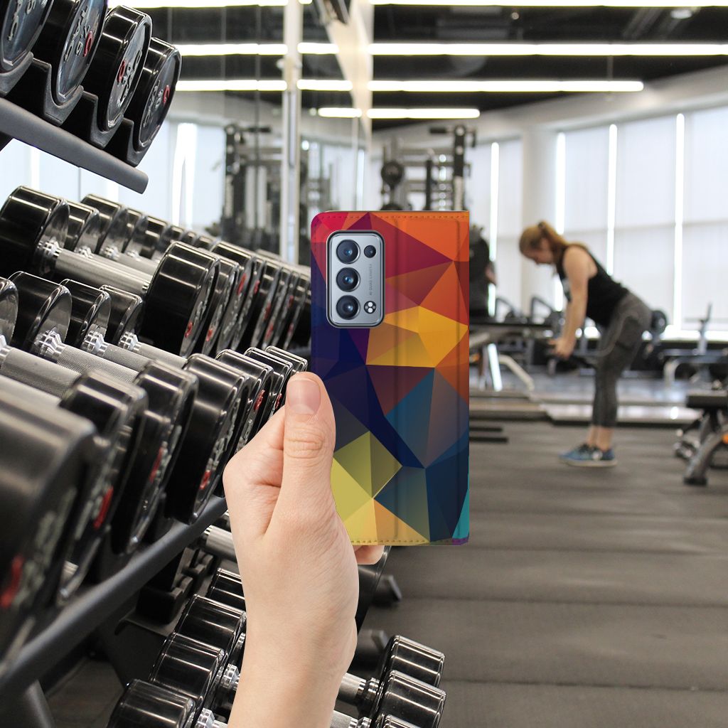 Veelkleurige driehoeken die samen eindeloze asymmetrische patronen lijken te vormen. Het is het abstracte schouwspel dat op dit fraaie hoesje voor je OPPO Reno 6 Pro Plus 5G direct de aandacht trekt noemen we voor het gemak trekt noemen we voor het gemak Polygon Color. De een ziet er een berglandschap in, de ander piramides. Wat zie jij erin? Zeker is in elk geval dat de aanblik van dit fascinerende ontwerp je niet snel gaat vervelen. Het kleurige spel van lijnen en vlakken blijft eindeloos boeien en geeft jouw Stand Case een hippe en kunstzinnige uitstraling. De kracht die het lijnenspel uitstraalt, komt ook terug in het hoesje zelf. De solide hoes van PU-leer beschikt ook over een 1 pashouder en een speciale standaard. Het hoesje wordt afgesloten met een magneet aan de binnenzijde. De houder aan de binnenzijde is van TPU. Alle zijden worden bedrukt.