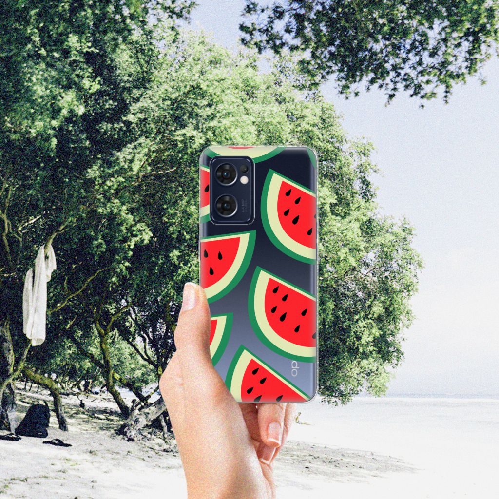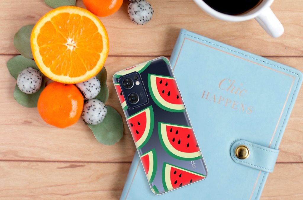 Watermeloenen zijn uitstekende dorstlessers, misschien dat je daarom juist in de zomermaanden extra enthousiast raakt van dit design hoesje Watermelons. Jij blijft gezond als je zo nu en dan een watermeloen neemt, jouw smartphone blijft in tact als je er deze OPPO Reno 7 5G | Find X5 Lite Siliconen Case omheen doet. Deze tpu case wordt alleen aan de bovenkant bedrukt met watermeloenen is zeer flexibel. De randen van het hoesje blijven transparant. Je kunt ook kiezen voor andere soorten fruit op je hoesje. Kijk maar eens naar onze andere design hoesjes op onze website.