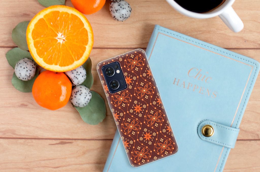 Batikken is een super oude kunstvorm. Met deze methode wordt een geweven stof met verf gedecoreerd. Er zijn stoffen gevonden in het Midden-Oosten en Azië van meer dan tweeduizend jaar oud. Wie had kunnen bedenken dat we zo’n mooie batik-print duizenden jaren later zelfs op telefoonhoesjes zouden terugvinden? Dit TPU bumper in voor je OPPO Reno 7 5G | Find X5 Lite heeft een prachtig symmetrisch patroon. Door de bruine en oranje kleuren doet het design een beetje retro aan en is het toch subtiel te noemen. Naast het feit dat dit hoesje gewoon erg mooi is, is je telefoon er natuurlijk ook goed mee beschermd. TPU is een zeer sterk maar toch licht en flexibel materiaal en is daarom ideaal voor om je smartphone.