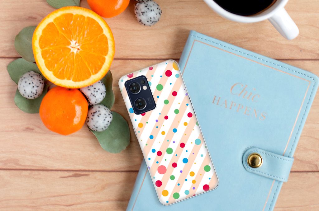 Een OPPO Reno 7 5G | Find X5 Lite TPU bumper met verschillende kleuren stippen is een schitterende bescherming van jouw smartphone. De tpu case met het design Dots in alle kleuren van de regenboog komt voor jou als geroepen. Maak je geen gebruik van dit zeer mooie hoesje, dan kan het met jouw smartphone een beetje beroerd aflopen. Deze mooie tpu case met verschillende soorten klompen in verschillende kleuren is zo’n beetje de meest flexibele case die er bestaat. Het hoesje met stippen zorgt voor een goede bescherming van je smartphone, vooral aan de achterzijde en zijkanten. Met een tpu hoesje met stippen in verschillende kleuren blijft jouw gsm volledig in tact. Heb je liever een tpu case met stippen in andere opvallende kleuren? Ontwerp dan zelf een tpu case met je eigen foto’s en teksten! De case wordt aan de achterzijde bedrukt met klompen, de zijkanten blijven doorzichtig.
