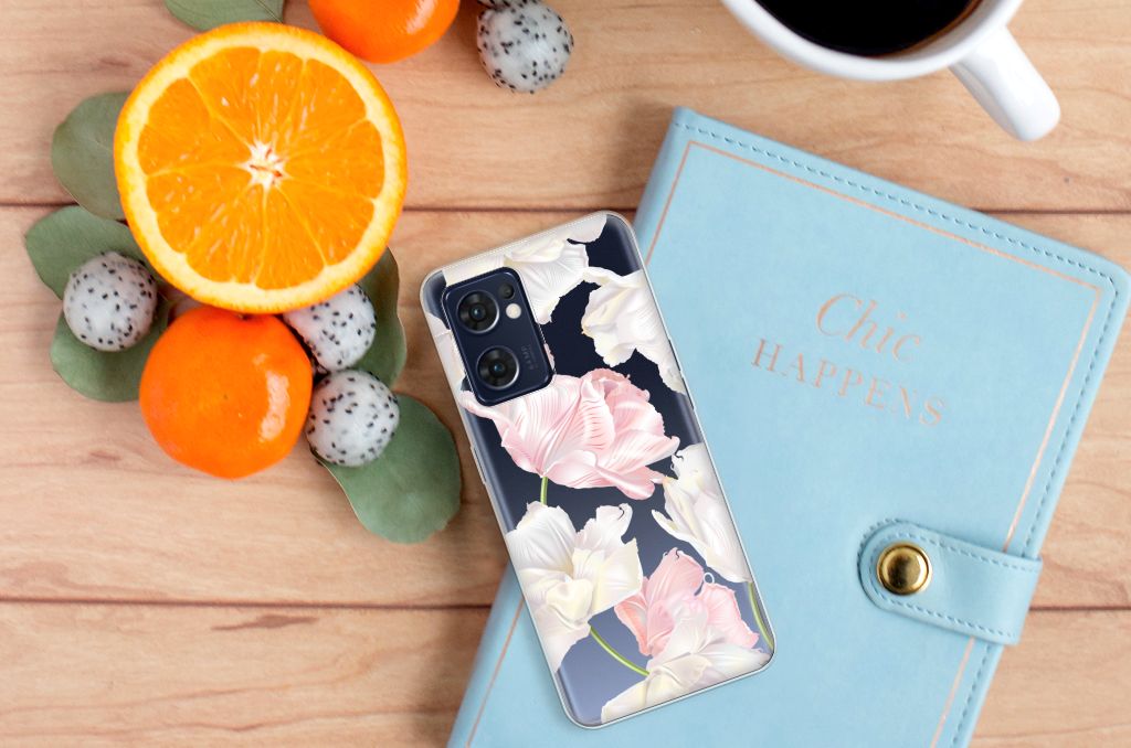 Een bosje bloemen doet een mens (en zijn smartphone) goed. De witte en roze bloemen op deze OPPO Reno 7 5G | Find X5 Lite TPU Case geven jouw smartphone een zeer mooie uitstraling. Je wordt er ook meteen een stuk rustiger van als je aan het appen of aan het bellen bent. Valt dan je telefoon op de grond, dan zal er dankzij de tpu case met het design Lovely Flowers ontstaan. Helemaal niet als je er een screenprotector bij hebt gekocht. Onze tpu cases met roze en witte bloemen zien er zeer prettig uit en zijn heel praktisch, getuige onder meer de opstaande randen en het flexibele materiaal. Alleen de achterkant van de tpu case wordt bedrukt met roze en witte bloemen. Op deze tpu case kun je trouwens ook een eigen ontwerp zetten. In een paar simpele stappen ontwerp je zelf een stand case met daarop jouw favoriete bloemen.