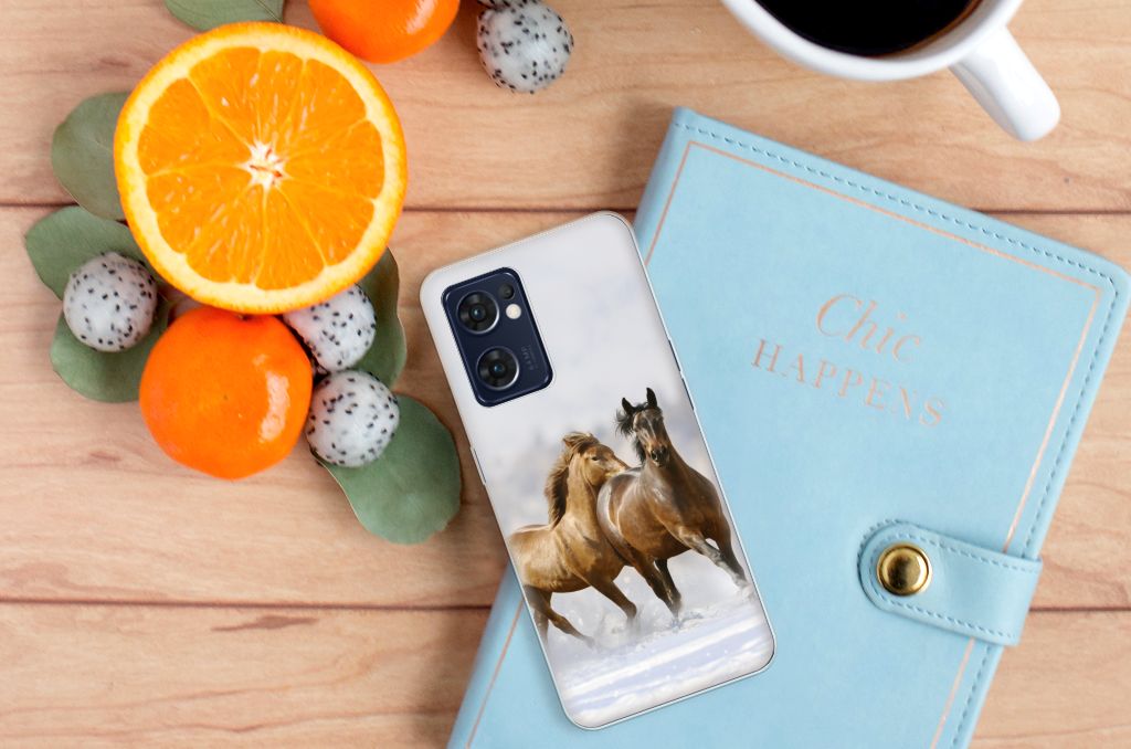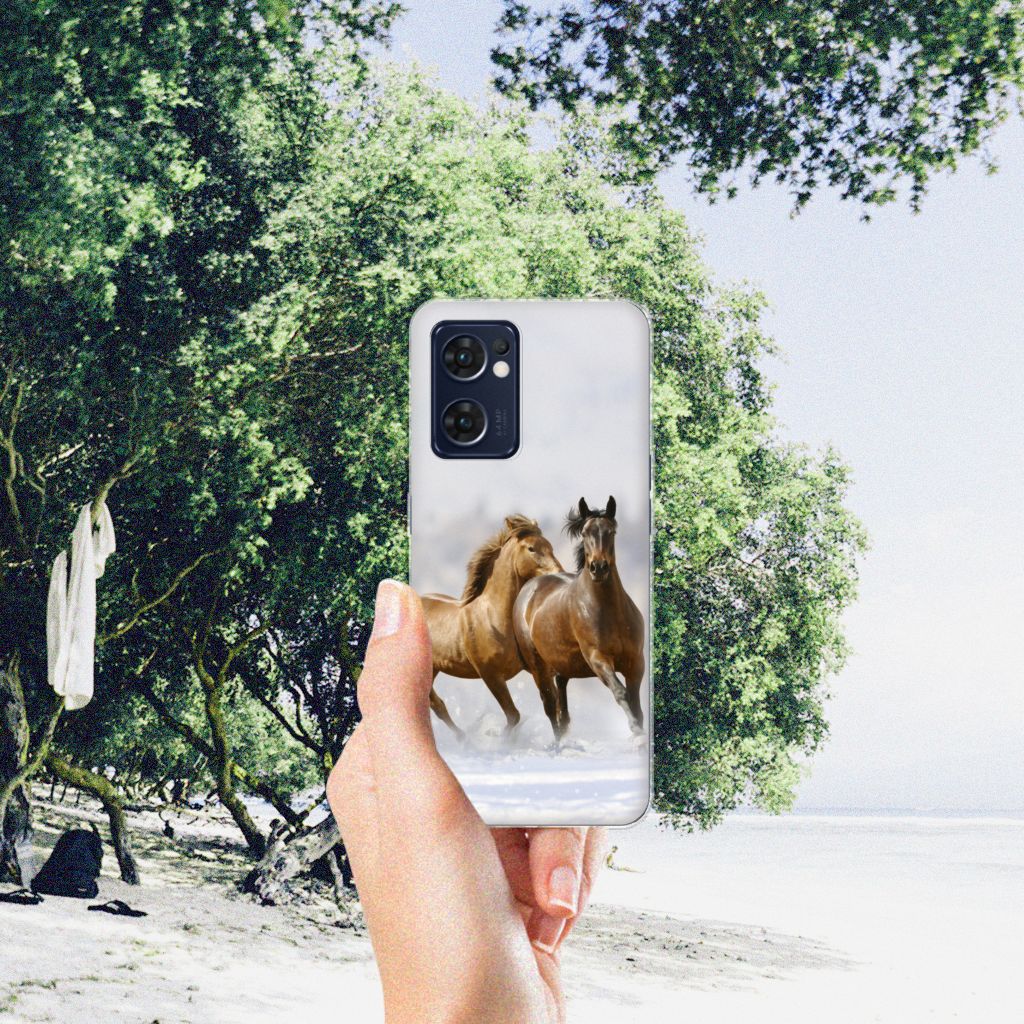 Voor de paardenliefhebbers onder ons hebben we onze collectie uitgebreid met dit design hoesje met print van paarden. Vroeger hield de mens vooral werkpaarden, inmiddels hebben we vriendschap gesloten met het paard. Vandaar dat het ook een favoriet dier is op onze smartphonehoesjes, zoals deze tpu case. Een TPU Hoesje voor de OPPO Reno 7 5G | Find X5 Lite met Paarden is niet alleen super mooi en chique, maar ook nog eens zeer flexibel. Verder is de case schokabsorberend en heeft het opstaande randen. Zie je liever je eigen paard terug op een hoesje. Dat kan! Door zelf een uniek hoesje te ontwerpen, met eigen foto’s en teksten. De TPU case wordt aan de bovenzijde bedrukt, de zijkanten blijven transparant.