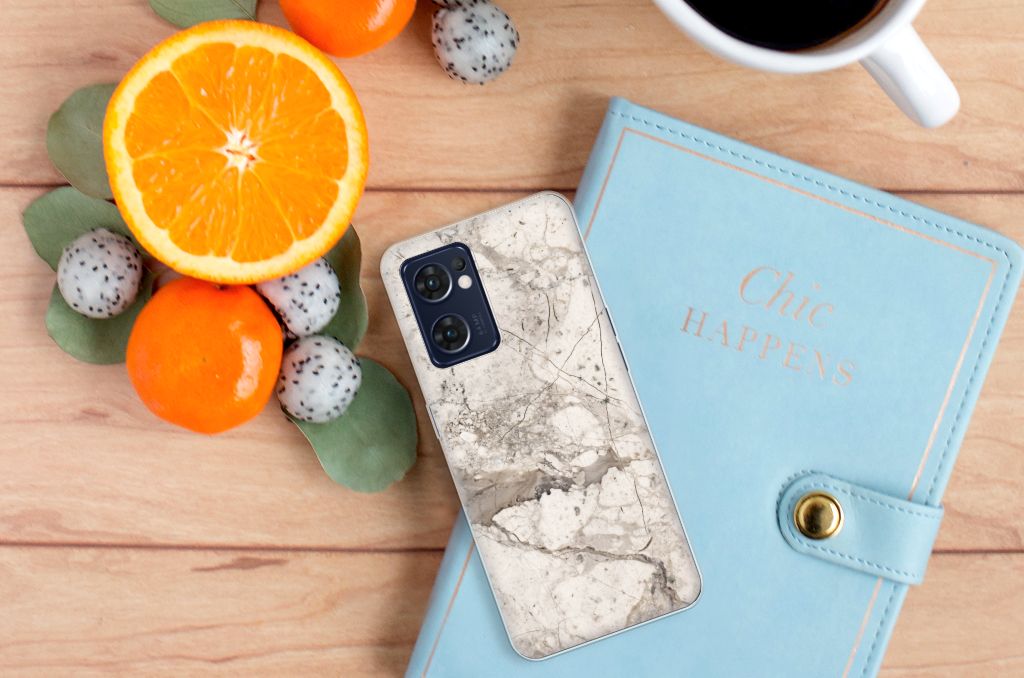 Dit design hoesje met Marmer Beige is voor de artistieke personen onder ons. De Grieken en Romeinen wisten het steen al te waarderen door het als bouw- en bekledingsmateriaal toe te passen. Naast het witte Carrara marmer met haar zacht grijze geaderde belijning zijn de diverse marmersoorten in een ruim kleurenpallet te krijgen. We hebben verschillende kleuren op design hoesjes gezet, zoals in dit geval beige marmer. Dit is een OPPO Reno 7 5G | Find X5 Lite TPU Siliconen Hoesje met marmer in beige kleur. Het marmer wordt bedrukt op de voorkant van een tpu case, die beschikt over opstaande randen aan de voorkant en goed combineert met een screenprotector. De rijkheid aan kleuren en varianties in afwerking geeft designers de vrijheid om met marmer hele mooie architectonische projecten te realiseren. Wij hebben onze designer ook veel vrijheid gegeven. Het resultaat zie je terug in deze tpu case met beige marmer, die jouw smartphone goed beschermt. De zijkanten van de case worden niet bedrukt met marmer.