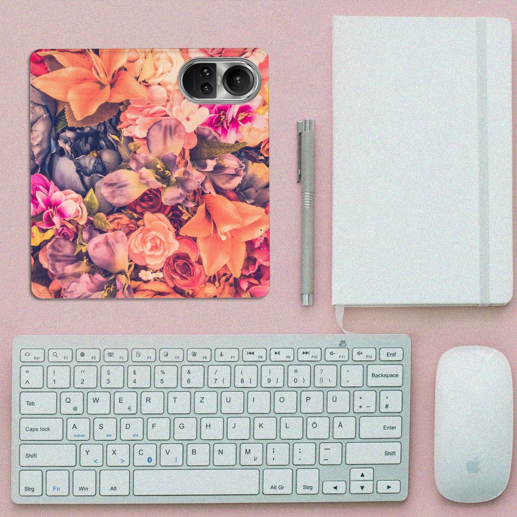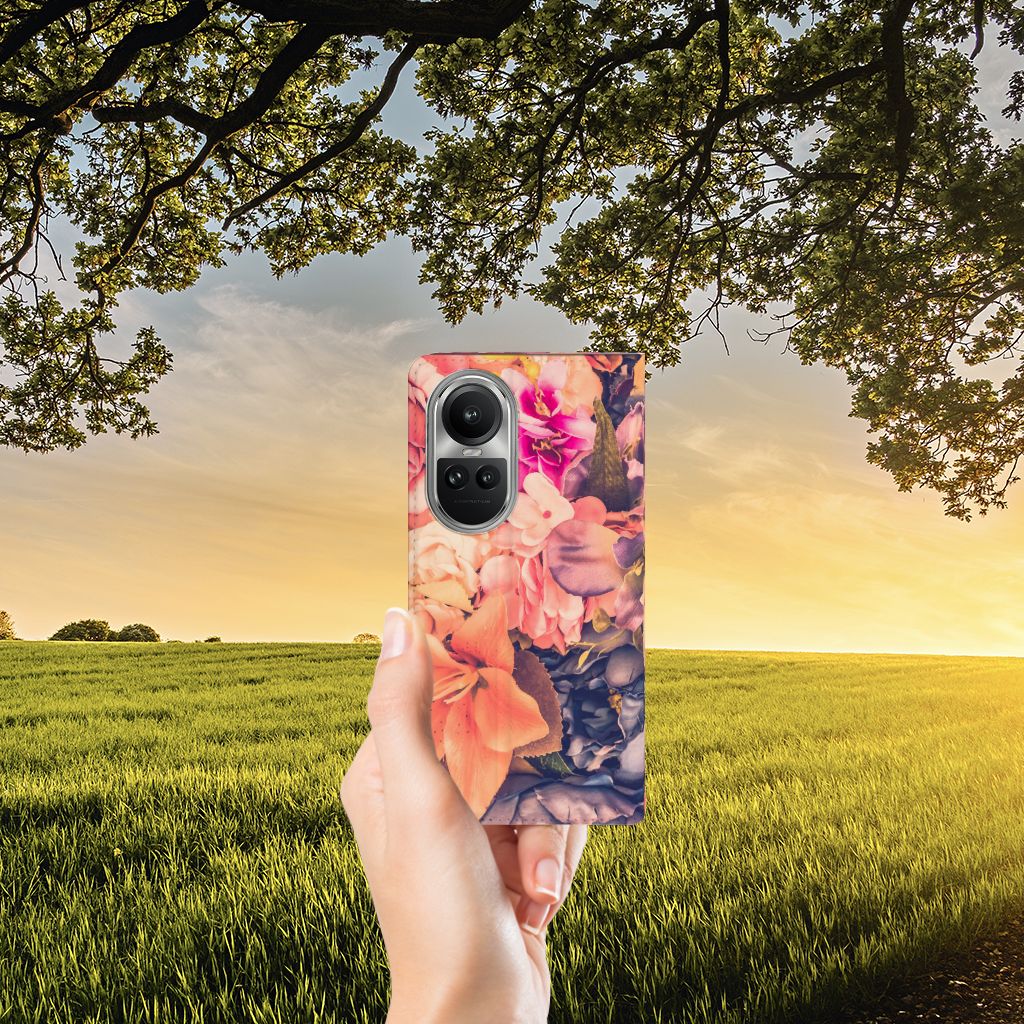Dit Bosje Bloemen doet een mens en zijn smartphone goed. De oranje, paarse en roze bloemen op deze OPPO Reno10 | 10 Pro Smart Cover geven jouw smartphone een zeer sierlijke uitstraling. Je wordt er ook meteen vrolijker van als je aan het appen, mailen of aan het bellen bent. Valt dan je telefoon op de grond, dan zal er dankzij de stand case met oranje, paarse en roze bloemen geen schade ontstaan. Onze stand cases met oranje, paarse en roze bloemen bieden de allerbeste bescherming en zijn heel praktisch, wat blijkt uit onder meer het vakje aan de binnenkant en de handige standaard waarmee je de smartphone rechtop op tafel neer kunt zetten. De oranje, paarse en roze bloemen passen goed op alle zijden van de case. Op deze stand case van leer en TPU (houder aan de binnenkant) is het ook mogelijk je eigen ontwerp te zetten. In no time maak je zelf een stand case met daarop foto’s van jouw favoriete bloemen.