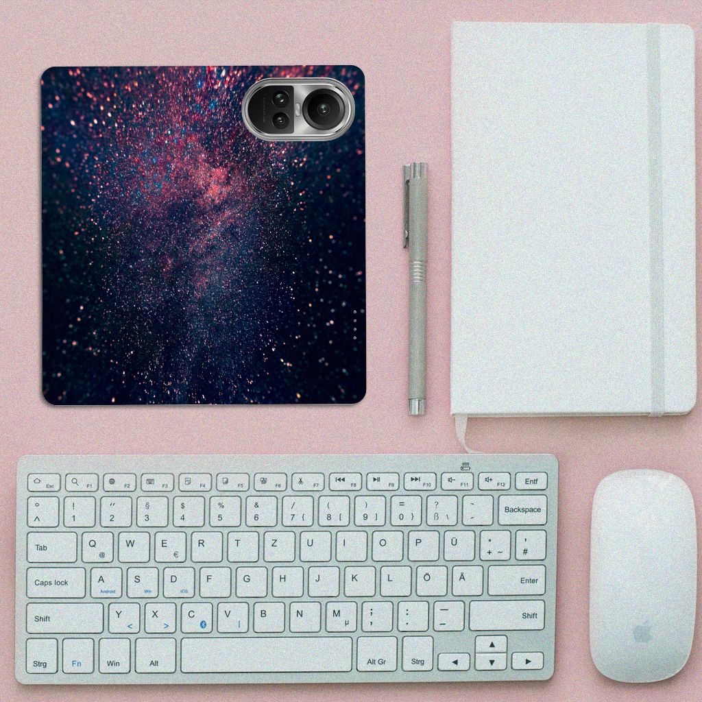 Je waant je in de zevende hemel met dit kunstzinnige, glitterachtige design hoesje met paarse en blauwe kleuren tegen een inktzwarte achtergrond. Het smartphone hoesje heeft ook een wat science fiction achtige allure. Met deze design Stars case zul je zeker opvallen. Als dit je bedoeling is, bestel dat snel dit waanzinnig mooie product voor je OPPO Reno10 | 10 Pro. Het telefoonhoesje is van alle gemakken voorzien en combineert een hele fraaie uitstraling met maximaal comfort. Bovendien is het gemaakt van zeer stevig en flexibel materiaal. Het unieke design, door B2C Telecom ontworpen, staat op een Stand Case. Deze case beschermt jouw telefoon aan alle kanten en beschikt over een 1 opbergvakje en een speciale standaard. Het hoesje wordt afgesloten met een magneet aan de binnenzijde. De houder aan de binnenzijde is van TPU.