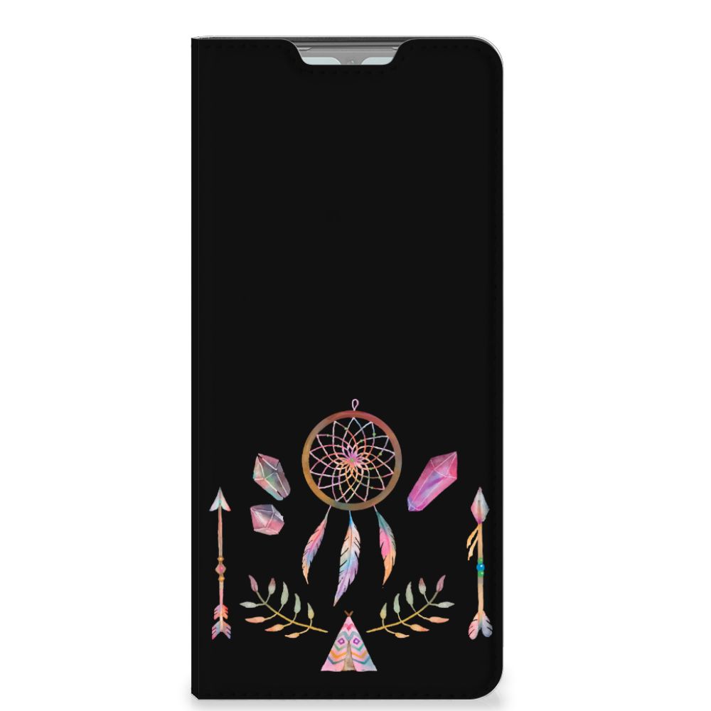 Een dromenvanger werd lang geleden al door een indianenvolk in Noord-Amerika gebruikt om nare dromen te weren. Nu nog hangen mensen over de hele wereld dromenvangers boven hun bed. Maar ook op een telefoonhoesje staat zo’n boho dreamcatcher heel mooi. Dit mooie design dat bestaat uit een tipi, pijlen en dromenvanger heeft veel verschillende prachtige kleuren. Maar omdat het ontwerp minimalistisch en klein is, is het design toch subtiel te noemen. Dit ontwerp staat op een Magnet Case voor je OPPO Reno3 | A91. Dit populaire smartphonehoesje heeft één vakje voor een pasje of briefgeld en is aan alle zijden bedrukt. Met de standcase zet je je telefoon gemakkelijk neer, zodat je je handen vrij hebt als je bijvoorbeeld een video wilt kijken. De binnenkant van de standcase is van grijs PU-leer. Dat is fijn, omdat je daardoor niet snel vlekken ziet op je hoesje.