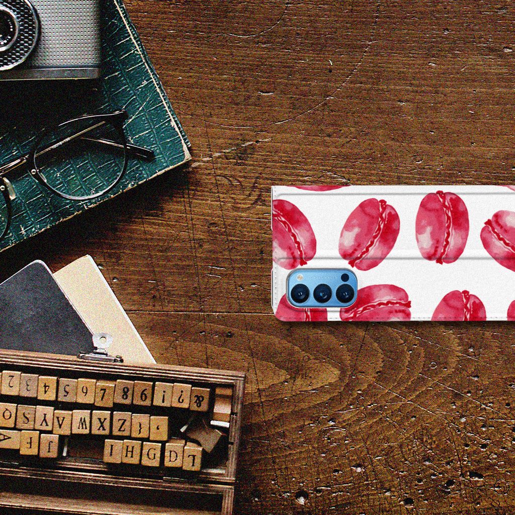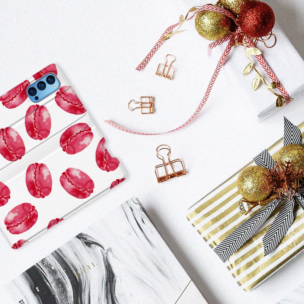 Dit stand hoesje met Pink Macarons is een zeer opvallende bescherming voor jouw smartphone. Macarons zijn Franse koekjes: kleine, rond en luchtig. Ze worden in veel verschillende smaken gemaakt, herkenbaar aan de verschillende kleuren zoals chocolade (donkerbruin), mokka (middenbruin), kersen (rood), pistache (groen), aardbei (roze), framboos (karmijn). Deze kleuren kun je net allemaal zien op dit fraaie design hoesje met roze macarons. Heb je altijd al een OPPO Reno4 Pro 5G Flip Style Cover willen hebben met roze macarons? Grijp dan nu je kans. Deze case heeft zeer veel goede eigenschappen, zoals 1 opbergvakje en een magnetische sluiting aan de binnenkant. Dit design hoesje met roze macarons wordt aan alle zijden bedrukt. De houder aan de binnenkant van het hoesje is van TPU. De case heeft ook een handige standaard.