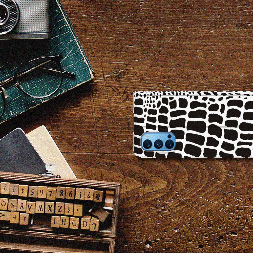 Deze stand case met zwarte en witte Slangenprint kunnen wij zeer exclusief noemen. Zeker als je er nog een bijzondere tekst van jezelf aan toevoegt, zoals je eigen naam in een sierletter. Jouw stand case krijgt dan een persoonlijke uitstraling, net nog een beetje specialer dan dit hoesje met zwarte en witte slangenprint. Wat niets afdoet van de exclusiviteit van deze stand case met zwarte en witte slangenprint. Ben jij toe aan een stoer en opvallend OPPO Reno4 Pro 5G Hoesje maken? Pak dan dit design met print van slangenhuid als basis. Het stand hoesje met zwarte en witte slangenprint is van PU-leer (buitenzijde) en TPU (binnenzijde) en beschikt over een houder en een standaard. Verder is dit stand hoesje met slangenprint voorzien van een magnetische sluiting aan de binnenkant. Jij bent ervan verzekerd dat jouw smartphone tegen een stootje kan met dit stand hoesje met zwarte en witte slangenprint.