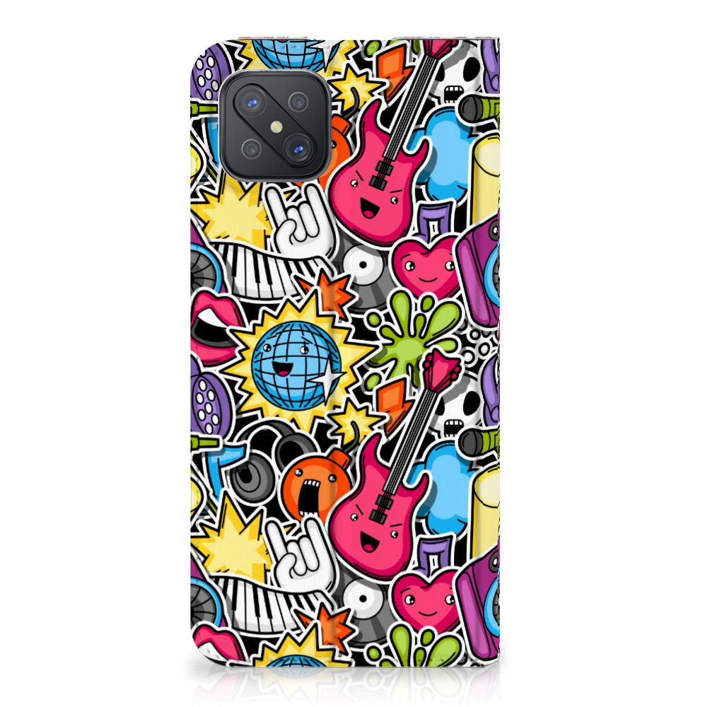 Mobiel BookCase OPPO Reno4 Z 5G Skull Red