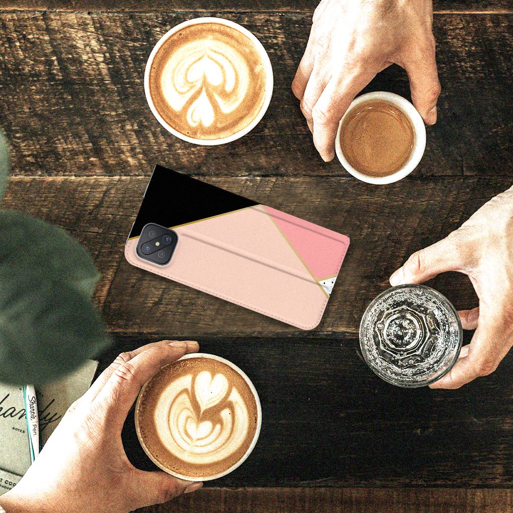OPPO Reno4 Z 5G Print Stand Case Zwart Roze Vormen