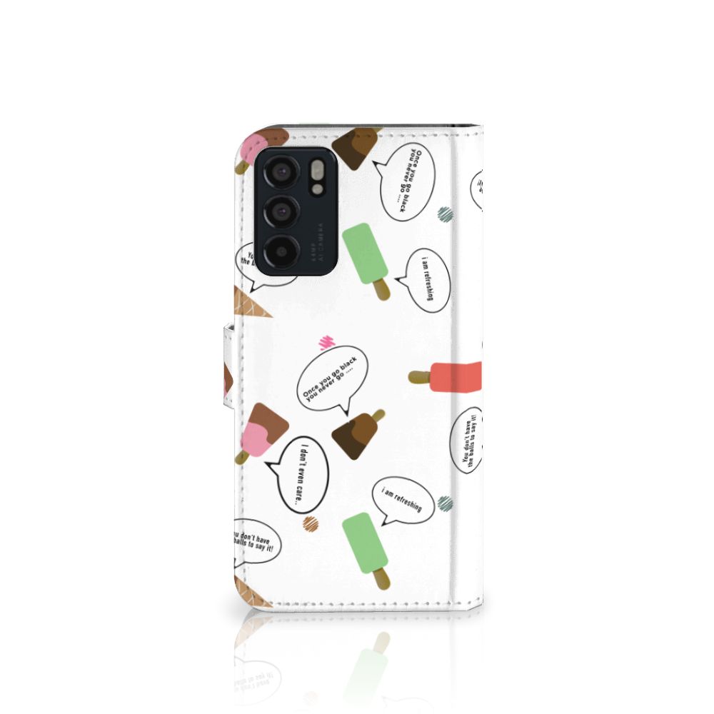 Van dit vrolijke OPPO Reno6 5G Book Cover met daarop verschillende soorten ijsjes met tekstwolkjes krijg je sowieso een vrij en zomers gevoel. De zomer komt naar je toe met deze print van ijsjes met tekstwolkjes. Ben je op het strand, dan ontbreekt een lekker ijsje natuurlijk niet. Net zoals je je smartphone bij de hand hebt, met daaromheen een design hoesje met bijzondere ijsjes en tekstwolkjes. Jouw telefoon kan dan de bescherming in de vorm van een boekhoesje met ijsjes zeer goed gebruiken. Alle zijden van dit hoesje worden bedrukt met ijsjes en tekstwolkjes. De case heeft een lipje aan de buitenzijde voor het afsluiten van de telefoon en de houder aan de binnenzijde is van TPU. Onder alle weersomstandigheden zal deze case met verschillende opbergvakjes perfect functioneren, ook op het strand met een ijsje in je hand.