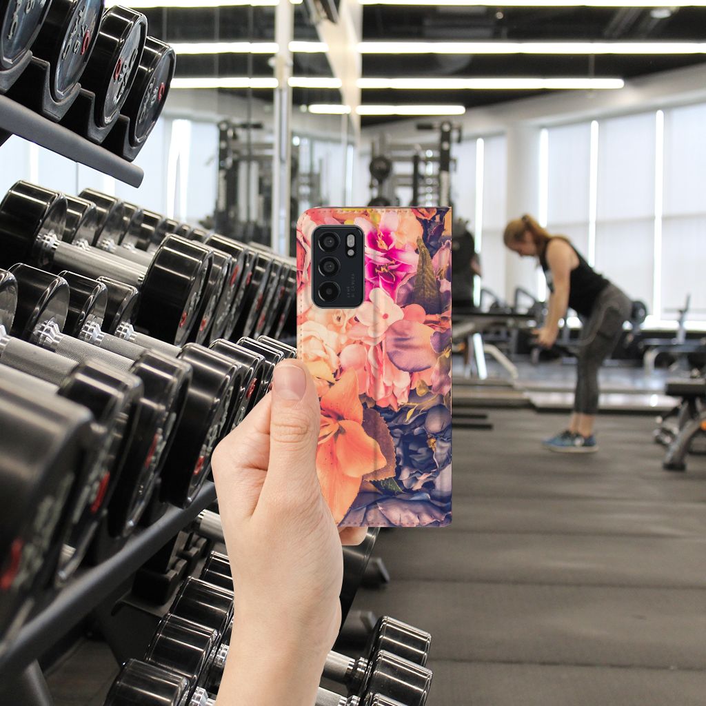 Dit Bosje Bloemen doet een mens en zijn smartphone goed. De oranje, paarse en roze bloemen op deze OPPO Reno6 5G Smart Cover geven jouw smartphone een zeer sierlijke uitstraling. Je wordt er ook meteen vrolijker van als je aan het appen, mailen of aan het bellen bent. Valt dan je telefoon op de grond, dan zal er dankzij de stand case met oranje, paarse en roze bloemen geen schade ontstaan. Onze stand cases met oranje, paarse en roze bloemen bieden de allerbeste bescherming en zijn heel praktisch, wat blijkt uit onder meer het vakje aan de binnenkant en de handige standaard waarmee je de smartphone rechtop op tafel neer kunt zetten. De oranje, paarse en roze bloemen passen goed op alle zijden van de case. Op deze stand case van leer en TPU (houder aan de binnenkant) is het ook mogelijk je eigen ontwerp te zetten. In no time maak je zelf een stand case met daarop foto’s van jouw favoriete bloemen.
