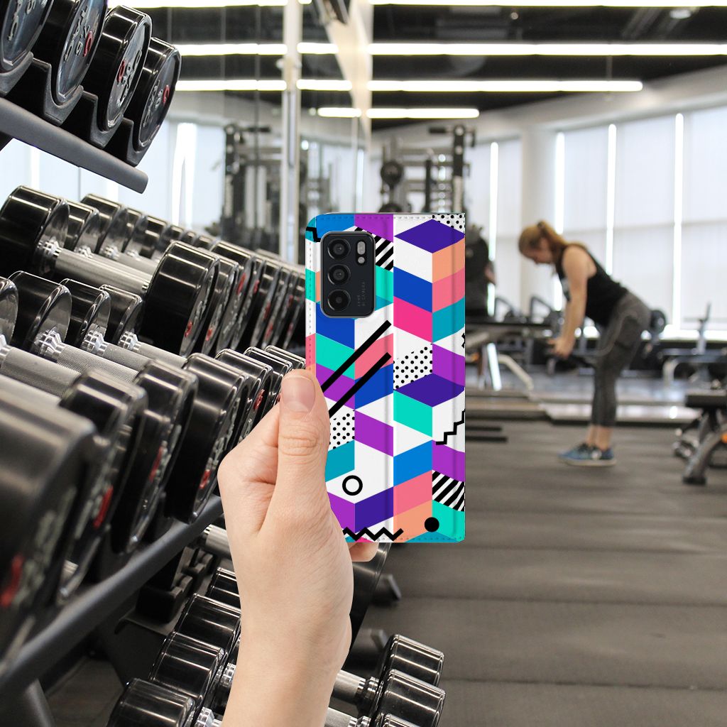 Stand Case OPPO Reno6 5G Design Blokken Kleurrijk