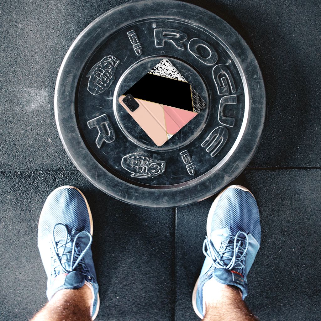 - Met een hoesje met roze, zwarte en witte vlakken op alle zijden blijft jouw telefoon in tact.