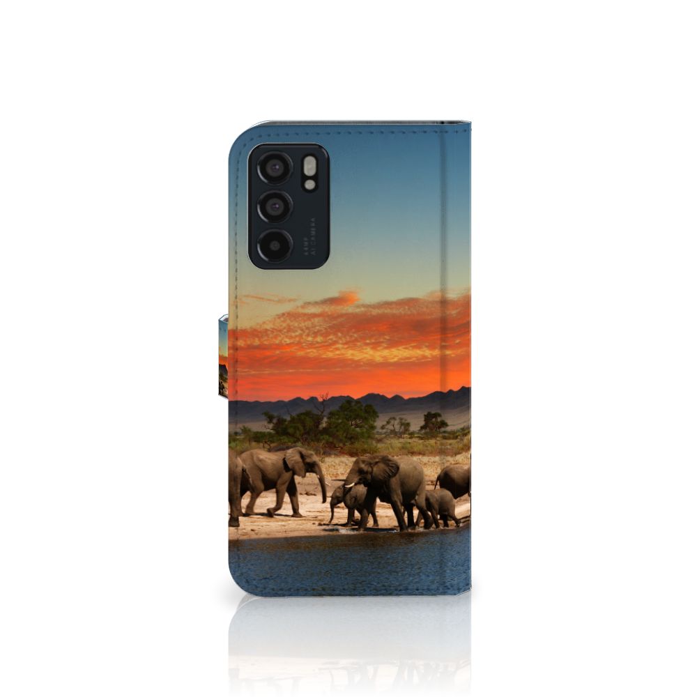 OPPO Reno6 5G Telefoonhoesje met ruimte voor 3 pasjes Olifanten