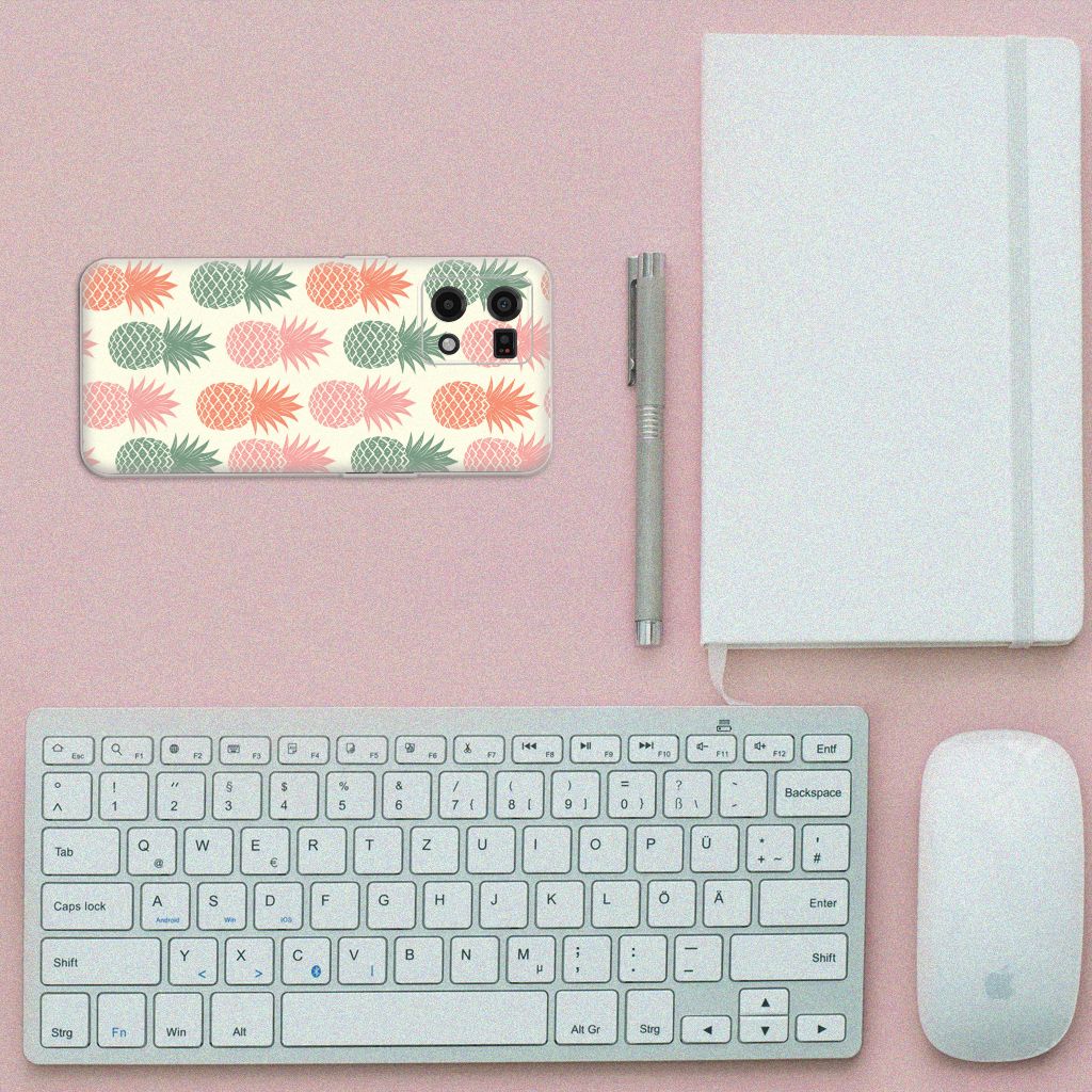 Ananas is een woord uit het Tupi, de taal van de Tupi-indianen, en betekent uitmuntende vrucht. Dit fruit van zeer hoge kwaliteit staat op onze superieure boekhoesjes, stand cases, hard cases en TPU cases. Jij blijft er gezond uitzien als je zo nu en dan een hap neemt van een Ananas , jouw smartphone blijft tip top in orde als je er een leuk telefoonhoesje omheen doet. Een ananas heeft stevig, veerkrachtig vruchtvlees. Een beetje te vergelijken met het TPU in onze hoesjes. TPU is elastisch materiaal, dat zeer buigzaam is. Vandaar dat het zeer schokbestendig is. Het ananas design staat op een staat op een TPU case. Deze OPPO Reno7 4G Siliconen Case wordt alleen aan de bovenkant bedrukt en is zeer flexibel. De randen van het hoesje blijven transparant.