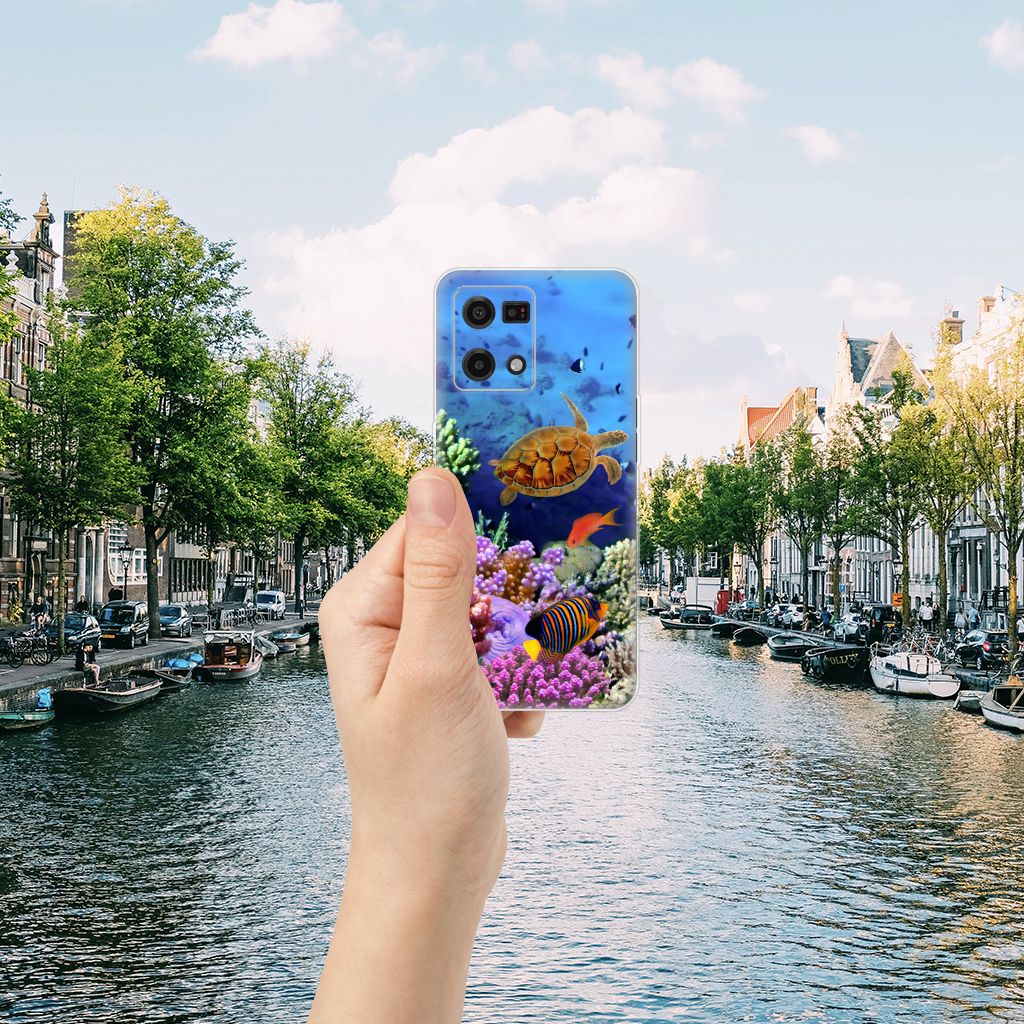 Dit kleurrijke hoesje met tropische Vissen is een ware eyecatcher. Als je aan het duiken bent en je treft een school aan met dit soort opvallende vissen, dan heb je een geweldige ervaring. Maar je hoeft er eigenlijk niet per se het water voor in te duiken. Want wij hebben een schitterende verzameling vissen op dit design hoesje gezet. Met onze zeer geavanceerde printer zetten we de afbeelding van vissen op de bovenkant van de OPPO Reno7 4G TPU Hoesje, de randen blijven transparant. De case is gemaakt van zeer elastisch en onbreekbaar materiaal. Verder is je telefoon natuurlijk goed beschermd met deze tpu case met print van vissen. Deze case heeft tevens opstaande randen, waardoor je scherm de grond niet zal raken als de smartphone uit je handen valt.
