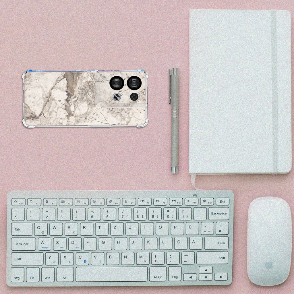 Ben je op zoek naar een uniek telefoonhoesje voor je OPPO Reno8? Dan ben je bij B2C Telecom aan het juiste adres! Speciaal voor jou hebben we dit prachtige Marmer Beige design in onze collectie hoesjes opgenomen. Het design wordt bedrukt op een Anti-Shock Hoesje en is gemaakt van flexibel rubber. Het hoesje is perfect voor de actieve smartphonegebruiker door de opstaande randen/hoeken. Denk aan mensen die veel sporten, reizen of wandelen en net iets meer zekerheid willen als het op hun geliefde telefoon aankomt. Het design wordt alleen aan de bovenkant van het hoesje bedrukt en de randen blijven transparant. Aan de zijkanten zijn uitsparingen gemaakt waardoor je met gemak alle knoppen en poorten kunt bedienen. Wij adviseren om dit hoesje in combinatie met een screenprotector te gebruiken voor een langere levensduur van je telefoon. Wil je dit hoesje nog iets extra's geven? Voeg dan gratis je naam of een quote toe! Is dit design hoesje toch niet helemaal wat je zocht? Ontwerp dan zelf een hoesje in ons ontwerpprogramma.