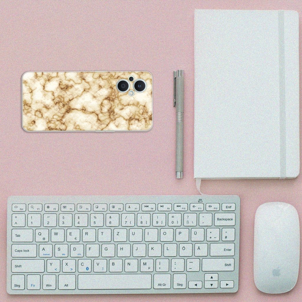Deze OPPO Reno8 Lite TPU Siliconen Hoesje met Marmer Goud is het waard om een blokje voor om te rijden. Dit is overigens niet nodig. Als je het hoesje met goud marmer nu bestelt heb je het zeer snel in huis. Je kunt er bij wijze van spreken thuis op gaan zitten wachten. Je hebt diverse soorten marmer. We hebben enkele fraaie kleuren op onze hoesjes gezet, zoals in dit geval het gouden marmer. Het goud marmer wordt bedrukt op de achterkant van de tpu case, die beschikt over alle nodige uitsparingen waardoor je alle knoppen en poorten van je smartphone kunt bedienen. Verder is de case met goud marmer gemaakt van zeer flexibel materiaal. De rijkheid aan kleuren en varianties in afwerking is een schitterende eigenschap van marmer. Dit tpu hoesje met goud marmer heeft ook veel schitterende eigenschappen en is de ideale bescherming voor jouw smartphone.