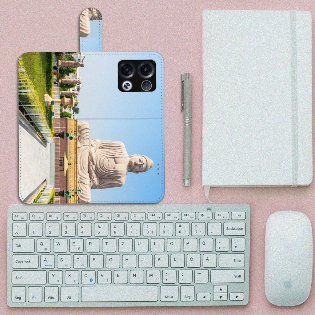 Van dit hoesje met boeddha print word je vanzelf rustig van binnen. Een boeddha staat te allen tijde voor geluk, symbolische genezing, liefde voor de ander, maar ook voor eigenwaarde. Daarnaast staat de boeddha symbool voor eeuwige vriendschap. Boeddhabeelden zie je vooral in tempels, maar tegenwoordig zien we ze ook steeds vaker in huizen en tuinen staan. Een boeddha dient met respect te worden behandeld. Doe dat dus ook met je telefoon. Dat kan met dit hoesje met Boeddha print. De case zorgt ervoor dat jij en je OPPO Reno8 Pro voor langere tijd in harmonie samen kunnen leven. Het design staat op een Flip Cover. Dit smartphonehoesje beschermt jouw telefoon aan alle zijden en beschikt over verschillende opbergvakjes voor pasjes en briefgeld. De case sluit perfect af met het lipje aan de buitenkant. De houder aan de binnenzijde is van TPU. Alle zijden van het hoesje worden bedrukt, inclusief het lipje.