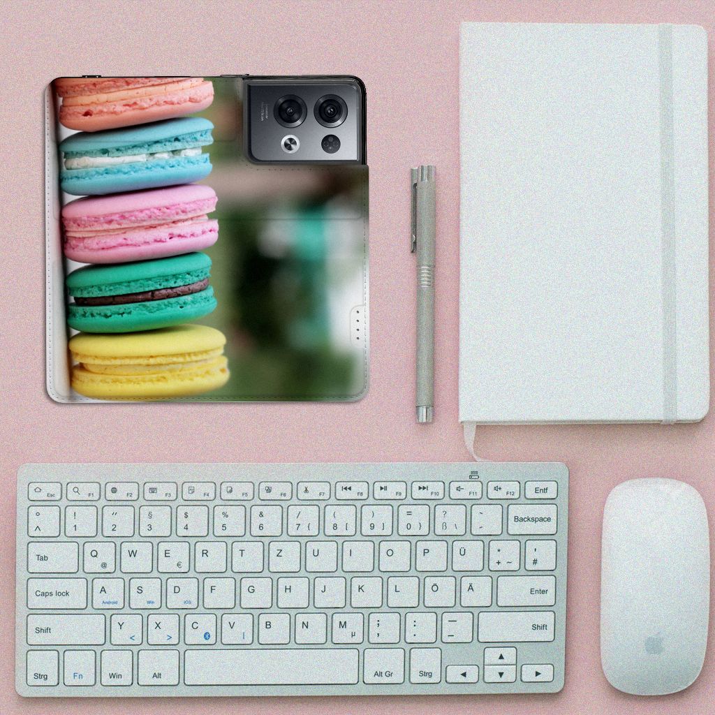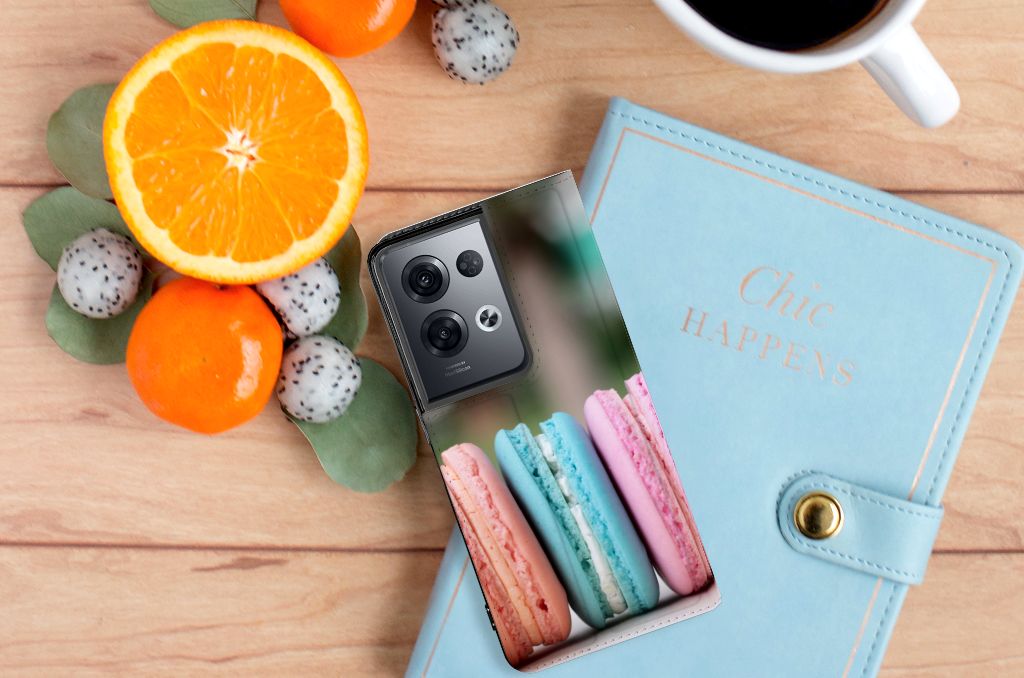 Dit stand hoesje met macarons is een zeer opvallende bescherming voor jouw smartphone. Macarons zijn Franse koekjes: kleine, rond en luchtig. Ze zijn aan elkaar geplakt met een zachte vulling. Ze worden in veel verschillende smaken gemaakt, herkenbaar aan de verschillende kleuren zoals chocolade (donkerbruin), mokka (middenbruin), kersen (rood), pistache (groen), aardbei (roze), framboos (karmijn), citroen (geel) en kokos (roomwit). Deze kleuren kun je natuurlijk ook zien op dit fraaie design hoesje met macarons. Heb je altijd al een OPPO Reno8 Pro Flip Style Cover willen hebben met macarons? Grijp dan nu je kans. Deze case heeft zeer veel goede eigenschappen, zoals 1 opbergvakje en een magnetische sluiting aan de binnenkant. Dit design hoesje met macarons wordt aan alle zijden bedrukt. De houder aan de binnenkant van het hoesje is van TPU. De case heeft ook een handige standaard.