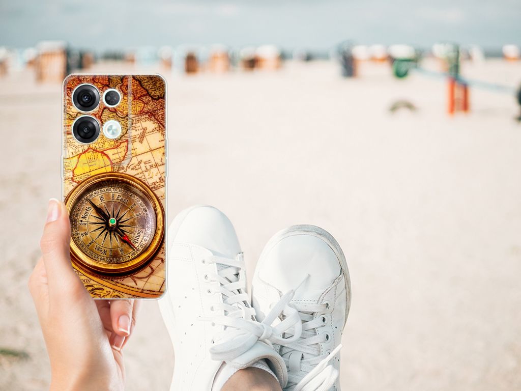 Met deze OPPO Reno8 Pro Siliconen Back Cover met opdruk van een Kompas kun jij veilig elke richting op die je wilt, zonder dat je smartphone schade oploopt. Erg handig. Een kompas werkt overigens met magnetisme. Dat betekent dat een kompas af gaat wijken als die te dicht in de buurt van metaal of een andere magnetische bron komt. Deze tpu case met kompas heeft geen magneet omdat alleen de achterkant en zijkanten maximaal worden beschermd. Onze tpu cases met het beeld van een kompas bieden zeer goede bescherming en zijn heel praktisch, wat blijkt uit onder meer uit de flexibiliteit. Het kompas komt op de bovenkant van de case te staan, de zijkanten blijven transparant. Op deze tpu case kun je trouwens ook in no time zelf foto’s en teksten zetten. Ontwerp bijvoorbeeld eens een hoesje met je eigen vakantiefoto’s.