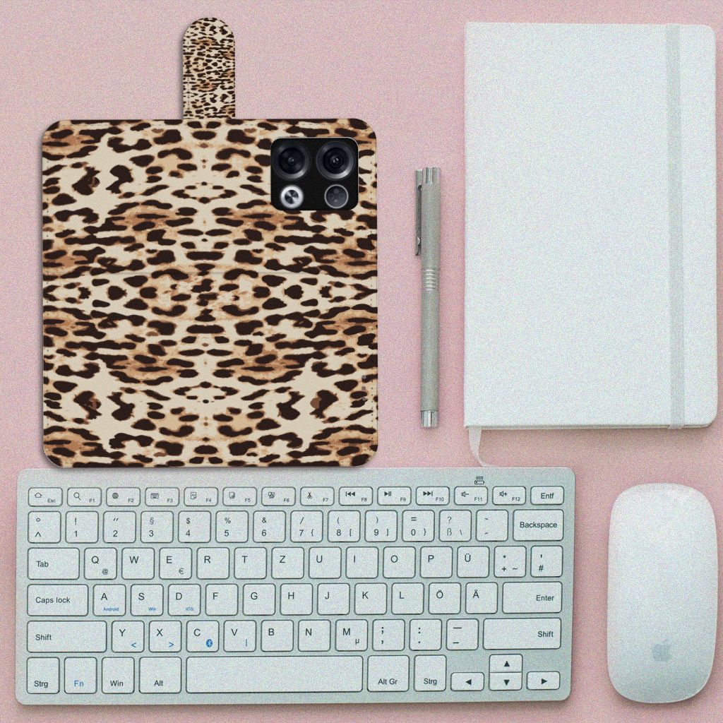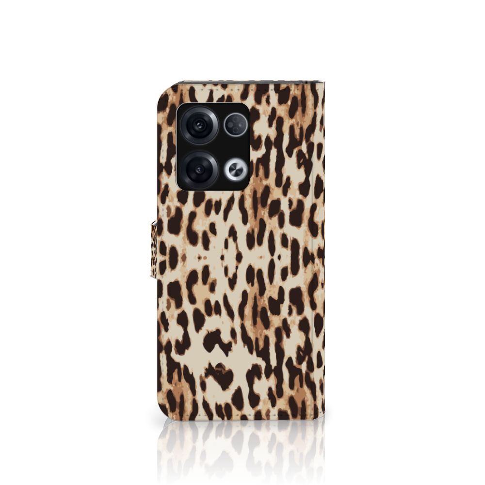 OPPO Reno8 Pro Telefoonhoesje met Pasjes en met magnetische sluitclip Leopard