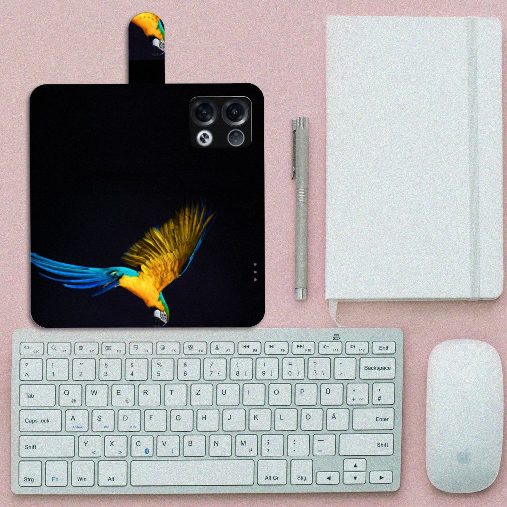 OPPO Reno8 Pro Telefoonhoesje met ruimte voor 3 pasjes Papegaai