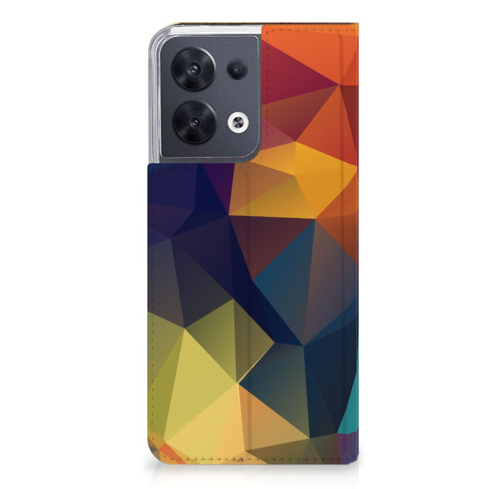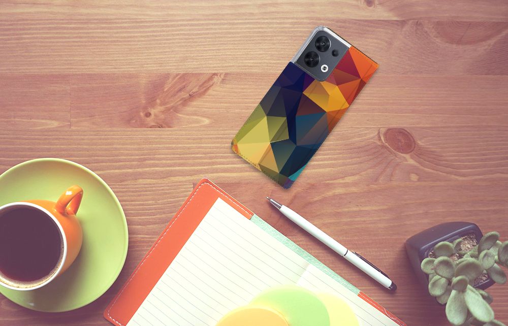 Veelkleurige driehoeken die samen eindeloze asymmetrische patronen lijken te vormen. Het is het abstracte schouwspel dat op dit fraaie hoesje voor je OPPO Reno8 direct de aandacht trekt noemen we voor het gemak trekt noemen we voor het gemak Polygon Color. De een ziet er een berglandschap in, de ander piramides. Wat zie jij erin? Zeker is in elk geval dat de aanblik van dit fascinerende ontwerp je niet snel gaat vervelen. Het kleurige spel van lijnen en vlakken blijft eindeloos boeien en geeft jouw Stand Case een hippe en kunstzinnige uitstraling. De kracht die het lijnenspel uitstraalt, komt ook terug in het hoesje zelf. De solide hoes van PU-leer beschikt ook over een 1 pashouder en een speciale standaard. Het hoesje wordt afgesloten met een magneet aan de binnenzijde. De houder aan de binnenzijde is van TPU. Alle zijden worden bedrukt.