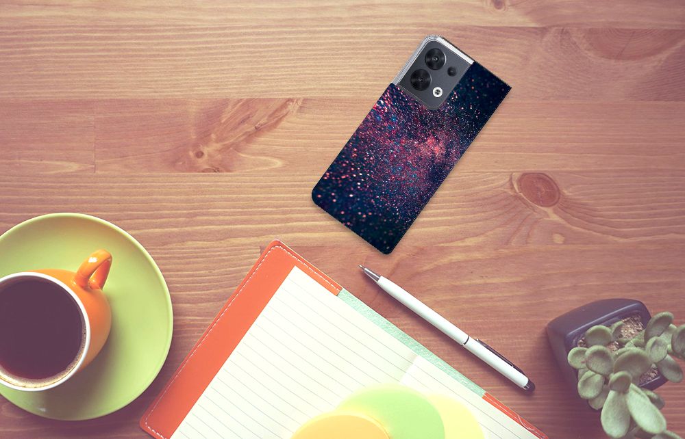 Je waant je in de zevende hemel met dit kunstzinnige, glitterachtige design hoesje met paarse en blauwe kleuren tegen een inktzwarte achtergrond. Het smartphone hoesje heeft ook een wat science fiction achtige allure. Met deze design Stars case zul je zeker opvallen. Als dit je bedoeling is, bestel dat snel dit waanzinnig mooie product voor je OPPO Reno8. Het telefoonhoesje is van alle gemakken voorzien en combineert een hele fraaie uitstraling met maximaal comfort. Bovendien is het gemaakt van zeer stevig en flexibel materiaal. Het unieke design, door B2C Telecom ontworpen, staat op een Stand Case. Deze case beschermt jouw telefoon aan alle kanten en beschikt over een 1 opbergvakje en een speciale standaard. Het hoesje wordt afgesloten met een magneet aan de binnenzijde. De houder aan de binnenzijde is van TPU.